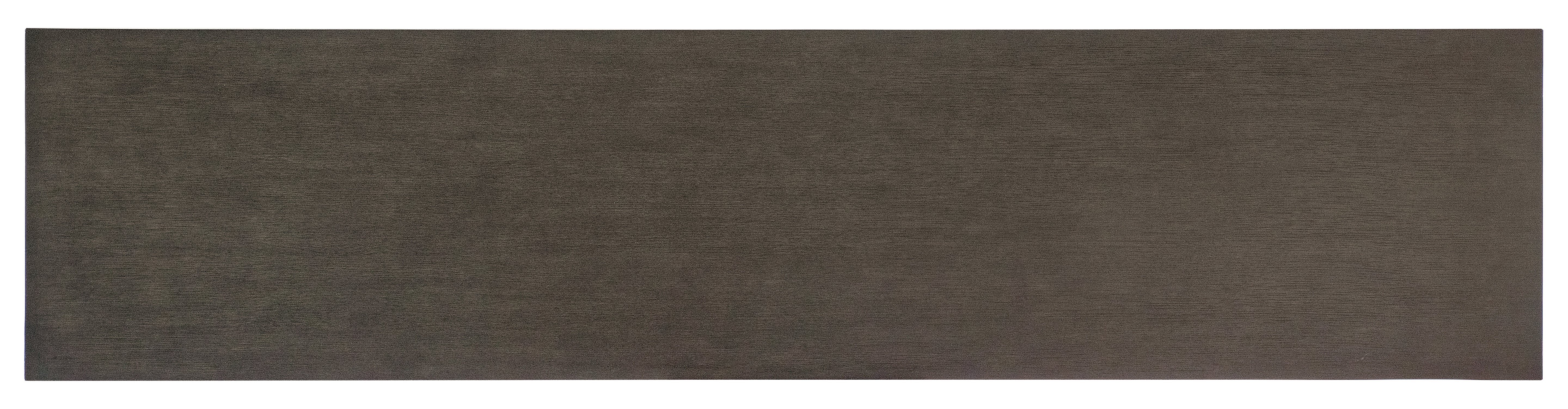 A sleek silhouette has a textured organic finish for a dynamic blend of shape and materials in the Kubrick Console Table. Crafted of Oak Veneers, it has a dark wood finish with a contrasting textured finish on the drawer fronts and the one fixed shelf.
