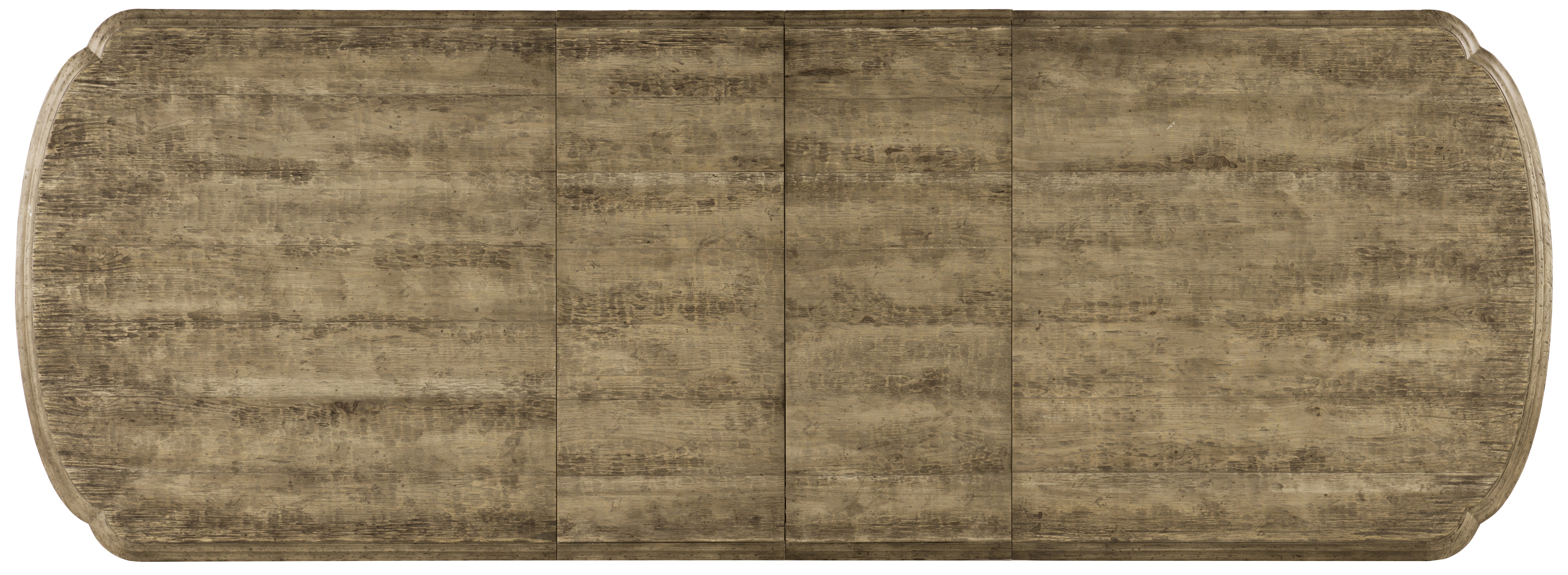 Gather in casual, relaxing grandeur with the Le Vieux Double Pedestal Table, an iconic silhouette of laid-back luxury. Inspired by the expansive but down-to-earth Hill Country of Texas, the double-pedestal base on the table is reminiscent of architectural brackets and arches, and makes the Le Vieux memorable. The base is finished in a Flemish Paint, and the top is finished in Barnwood, a multi-tone brown with heavy distressing emulating reclaimed wood. Accommodates two arm chairs and four side chairs without the two 18-inch leaves. With one or two leaves, the table accommodates two arm chairs and up to six side chairs.