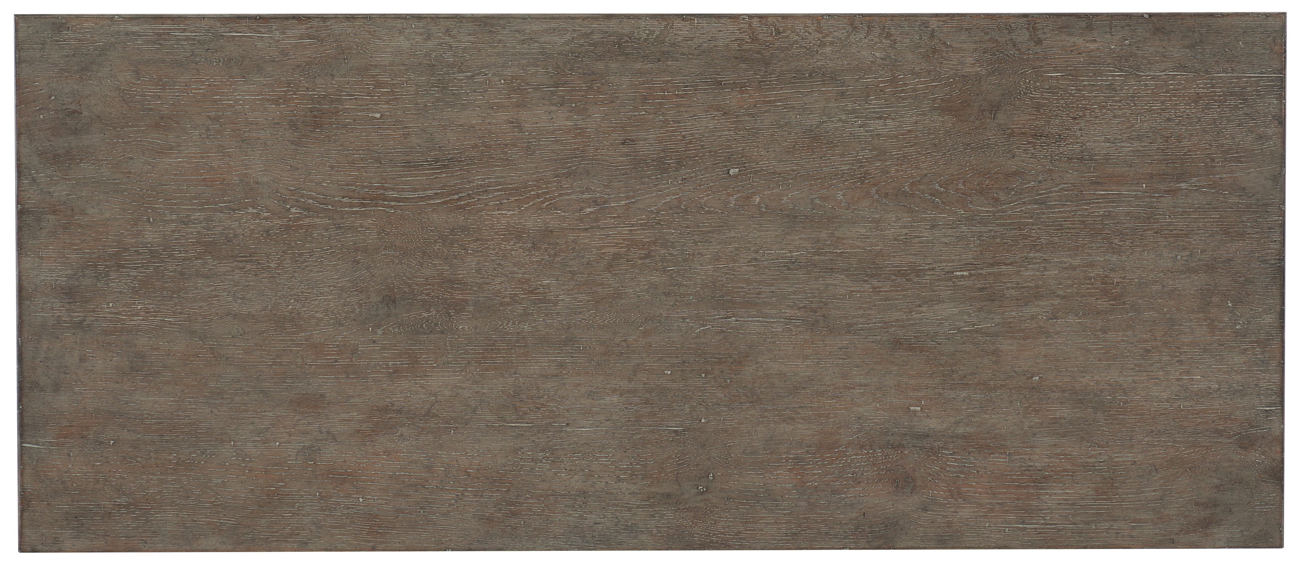 One adjustable shelf behind left side pair of doors Finish: Eglomise glass accents, medium wood finish with distressing including antiquing, wire brush, gouging and rasping. Antique brass knobs Hooker Furniture utilizes a multiple-step finish process of up to 16 finish steps. This results in an unsurpassed clarity, depth and color richness and durability to our finishes. Through hand-craftsmanship such as rubbing and padding, our finishes feel as good as they look, with a smoothness that is delightful to the touch. Hooker Furniture uses carefully chosen solid wood and select wood veneers over durable wood products in our furniture construction. Use of veneers enables more decorative looks unattainable with solid wood. Veneers are used over durable wood products such as medium density fiberboard (MDF) and particle board, made of renewable resources. MDF and particle board are used in quality furniture for areas that need to be stable, such as large surfaces. These durable wood products do not expand and contract with heat and cold and do not absorb moisture as much as solid wood, which results in stronger and longer-lasting furniture. Quartered White Oak Veneers and Glass We recommend dusting frequently with a clean, soft, dry, lint-free cloth. Clean the surface by rubbing in the direction of the grain. We recommend polishing your furniture approximately every six months using a clean, soft, lint-free cloth and rubbing the polish in the direction of the grain. Guardsman furniture polish or any furniture polish that doesn't contain silicone is recommended. Hooker Furniture offers full height, full depth and full width drawers for maximum storage capacity. All drawers have strong, time-tested English or French dovetail construction, for years of problem-free use. Plywood drawer bottoms are attached to plywood drawer sides for strength and durability. Metal side guides or wood on wood guide systems operate smoothly. Dimension (LxWxH):22.75 x 52.00 x 30.75