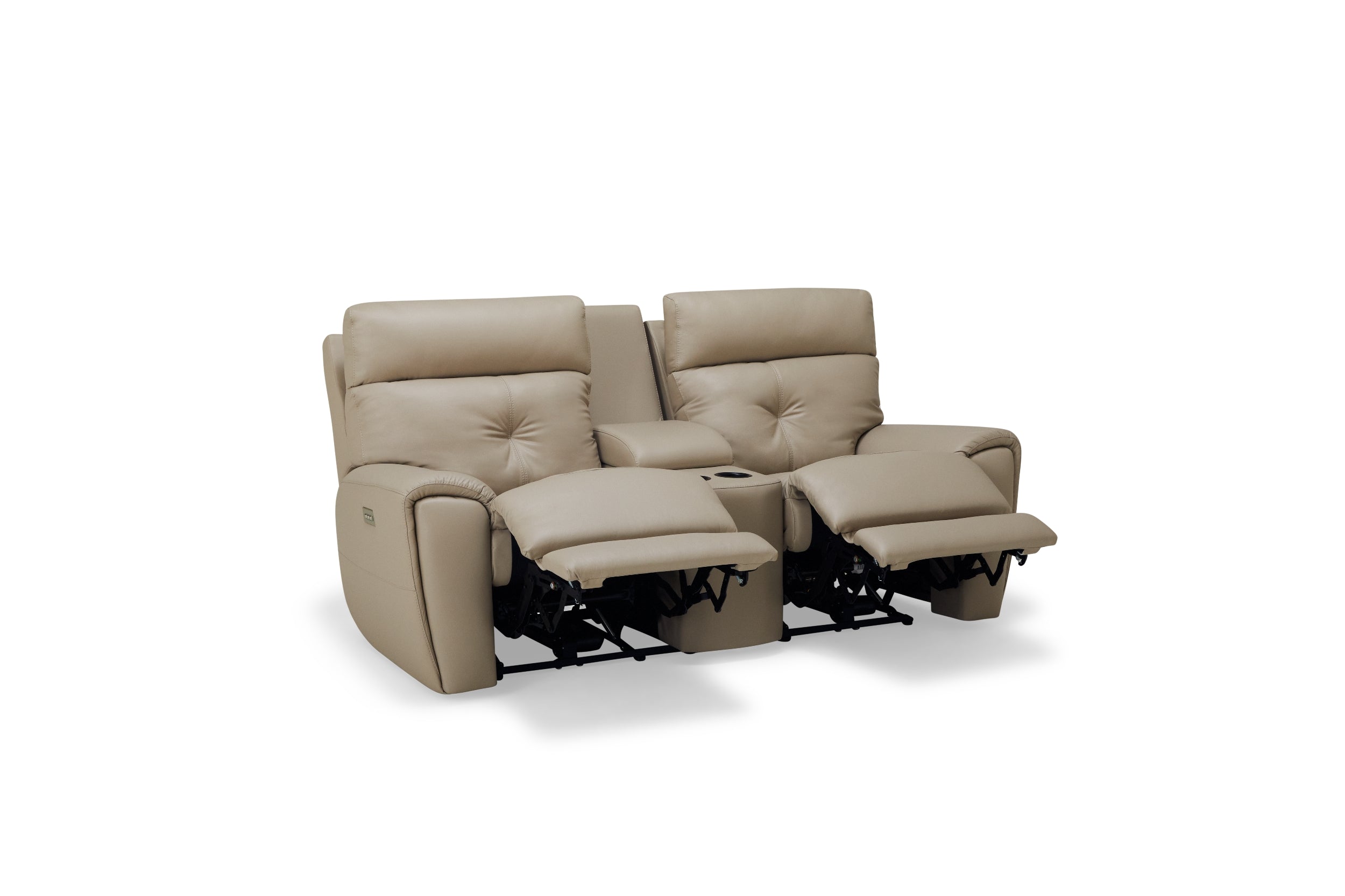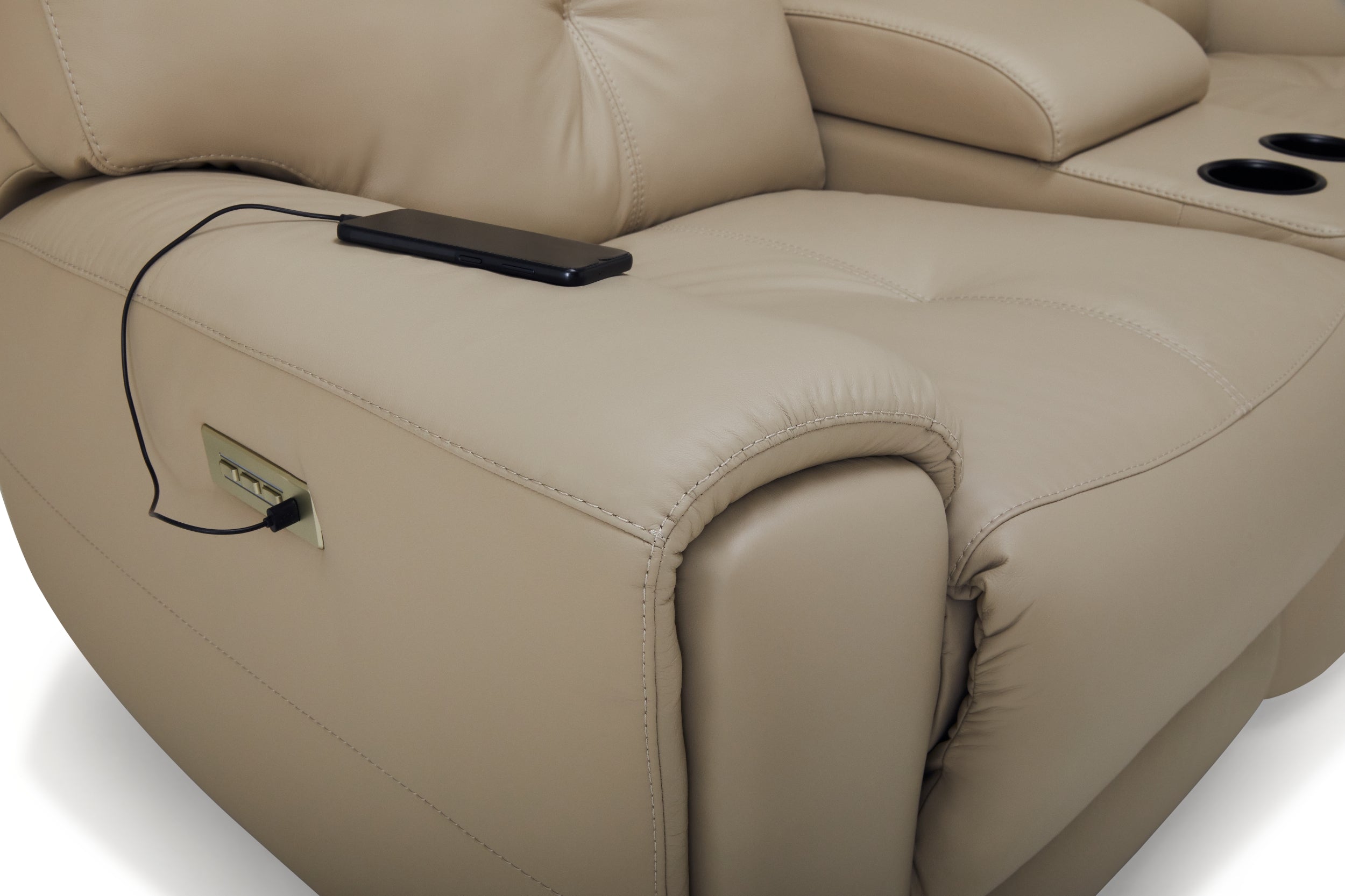 The solid, sumptuous profile of the Aedon creates a seat you can't wait to sink into. High-density foam seating and blown-fibre backs accented by a double topstitch pull creates visual drama and an inviting embrace, framed by a stylized pad-over arm. Superior comfort is further enhanced by the clean, seamless motion and infinite positioning of power headrest, recline, and lumbar. Wall- hugger technology provides a full recline with only 4" of wall clearance. Movements are activated by a convenient brushed-metal switch that includes integrated USB charging. The console loveseat provides a wealth of extras. This includes deep storage, cupholders, more USB charging, an add on such as a grommet can support additional optional add- ons such as tablet stands, tables, and LED flex lights. This signature transitional look gives the ease and comfort of motion, with clean styling that will suit the décor of any home.