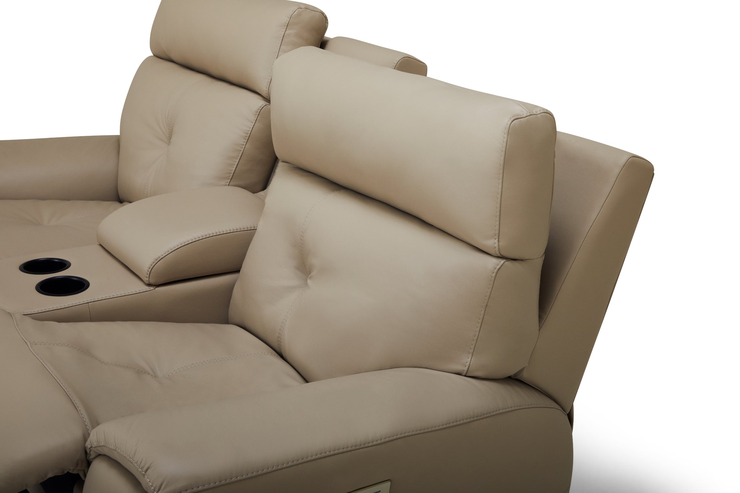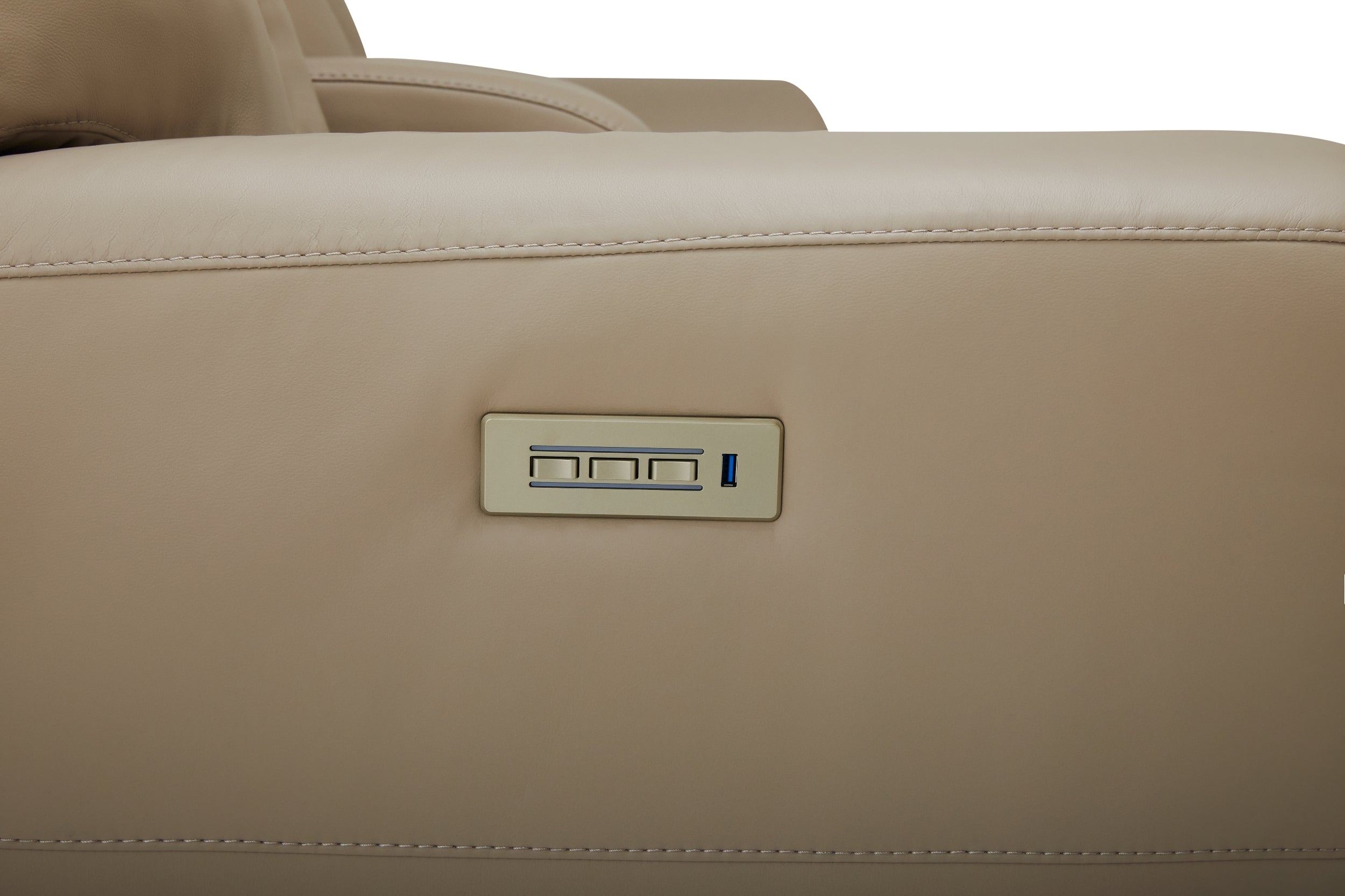 - Power recline, power headrests and power lumbar with a button switch featuring integrated USB charging, and LED backlighting, finished in an attractive brushed metal