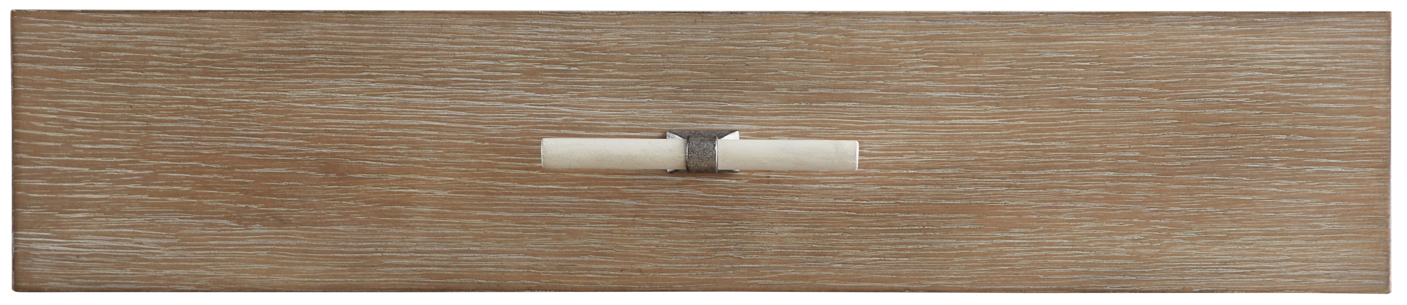 Pewter and cream bar pull Finish: Greige sand-blasted finish on quartered oak veneers with cream and pewter bar pull Hooker Furniture utilizes a multiple-step finish process of up to 16 finish steps. This results in an unsurpassed clarity, depth and color richness and durability to our finishes. Through hand-craftsmanship such as rubbing and padding, our finishes feel as good as they look, with a smoothness that is delightful to the touch. Hooker Furniture uses carefully chosen solid wood and select wood veneers over durable wood products in our furniture construction. Use of veneers enables more decorative looks unattainable with solid wood. Veneers are used over durable wood products such as medium density fiberboard (MDF) and particle board, made of renewable resources. MDF and particle board are used in quality furniture for areas that need to be stable, such as large surfaces. These durable wood products do not expand and contract with heat and cold and do not absorb moisture as much as solid wood, which results in stronger and longer-lasting furniture. Oak Veneers We recommend dusting frequently with a clean, soft, dry, lint-free cloth. Clean the surface by rubbing in the direction of the grain. We recommend polishing your furniture approximately every six months using a clean, soft, lint-free cloth and rubbing the polish in the direction of the grain. Guardsman furniture polish or any furniture polish that doesn't contain silicone is recommended. Hooker Furniture offers full height, full depth and full width drawers for maximum storage capacity. All drawers have strong, time-tested English or French dovetail construction, for years of problem-free use. Plywood drawer bottoms are attached to plywood drawer sides for strength and durability. Metal side guides or wood on wood guide systems operate smoothly. Dimension (LxWxH):18.00 x 28.00 x 29.00
