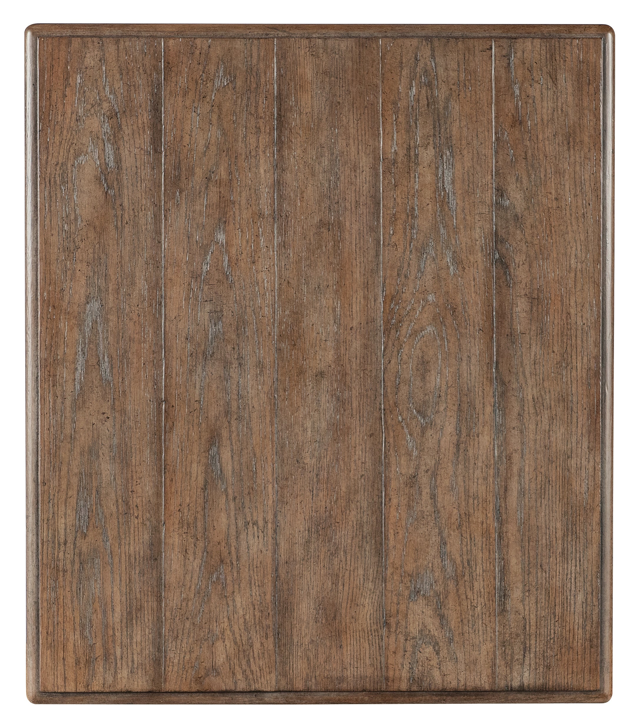 Scalloped shaped legs Finish: The Americana Daisy finish is a time worn white finish on cathedral oak veneers representing the natural wear one might expect of pieces passed down through the family over time revealing the rich oak character beneath. Metal alloy round pull in an antique bronze finish. Hooker Furniture utilizes a multiple-step finish process of up to 16 finish steps. This results in an unsurpassed clarity, depth and color richness and durability to our finishes. Through hand-craftsmanship such as rubbing and padding, our finishes feel as good as they look, with a smoothness that is delightful to the touch. Hooker Furniture uses carefully chosen solid wood and select wood veneers over durable wood products in our furniture construction. Use of veneers enables more decorative looks unattainable with solid wood. Veneers are used over durable wood products such as medium density fiberboard (MDF) and particle board, made of renewable resources. MDF and particle board are used in quality furniture for areas that need to be stable, such as large surfaces. These durable wood products do not expand and contract with heat and cold and do not absorb moisture as much as solid wood, which results in stronger and longer-lasting furniture. Oak Veneers with Solid-Wood Edge Top We recommend dusting frequently with a clean, soft, dry, lint-free cloth. Clean the surface by rubbing in the direction of the grain. We recommend polishing your furniture approximately every six months using a clean, soft, lint-free cloth and rubbing the polish in the direction of the grain. Guardsman furniture polish or any furniture polish that doesn't contain silicone is recommended. Hooker Furniture offers full height, full depth and full width drawers for maximum storage capacity. All drawers have strong, time-tested English or French dovetail construction, for years of problem-free use. Plywood drawer bottoms are attached to plywood drawer sides for strength and durability. Metal side guides or wood on wood guide systems operate smoothly. Dimension (LxWxH):30.00 x 26.00 x 25.00