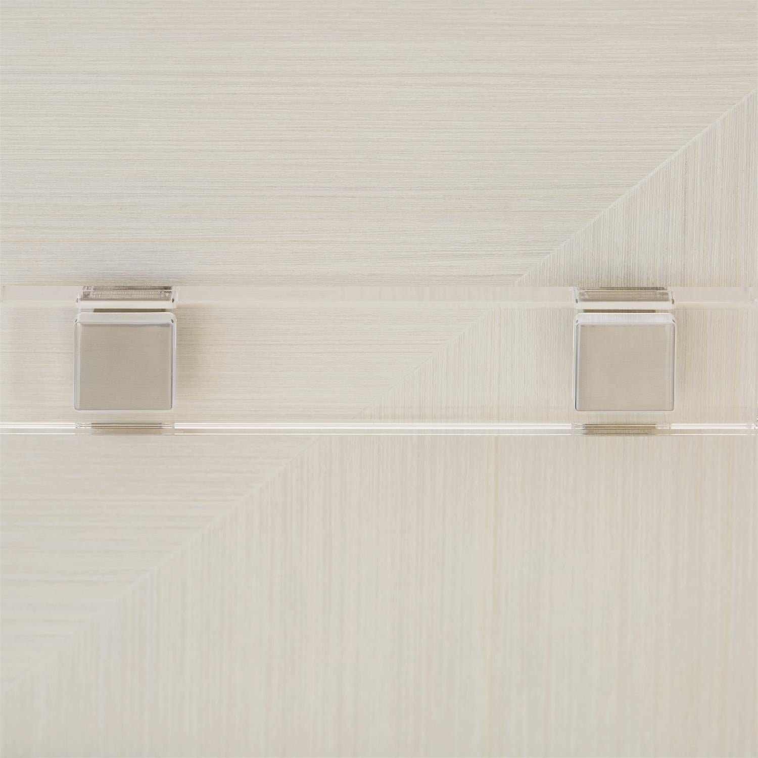 Axiom is a glamorous transitional furniture collection with a modern slant. Crafted from poplar solids and engineered faux anigre veneers, the Axiom nightstand uses a sophisticated palette of silky yet low-sheen finishes. The softly curved front and inverted pyramid design elevate the visual appeal of this piece. Clear acrylic is combined with metal for hardware with a fresh and unique feel. With clean lines and a sleek form, this three-drawer nightstand remains a warm and inviting staple for the bedroom.