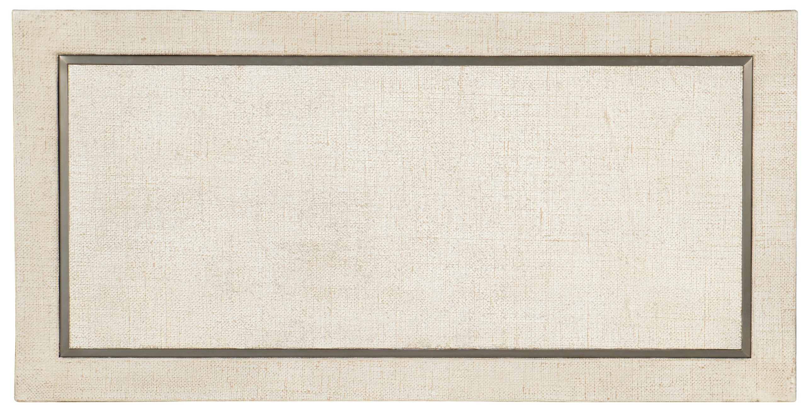 Cord clip on back Finish: Pebble Beach: lacquered burlap finish. Champagne colored metal inlay around top, middle shelf and bottom shelf. Hooker Furniture utilizes a multiple-step finish process of up to 16 finish steps. This results in an unsurpassed clarity, depth and color richness and durability to our finishes. Through hand-craftsmanship such as rubbing and padding, our finishes feel as good as they look, with a smoothness that is delightful to the touch. Hooker Furniture uses carefully chosen solid wood and select wood veneers over durable wood products in our furniture construction. Use of veneers enables more decorative looks unattainable with solid wood. Veneers are used over durable wood products such as medium density fiberboard (MDF) and particle board, made of renewable resources. MDF and particle board are used in quality furniture for areas that need to be stable, such as large surfaces. These durable wood products do not expand and contract with heat and cold and do not absorb moisture as much as solid wood, which results in stronger and longer-lasting furniture. Burlap and Metal Inlay We recommend dusting frequently with a clean, soft, dry, lint-free cloth. Clean the surface by rubbing in the direction of the grain. We recommend polishing your furniture approximately every six months using a clean, soft, lint-free cloth and rubbing the polish in the direction of the grain. Guardsman furniture polish or any furniture polish that doesn't contain silicone is recommended. Hooker Furniture offers full height, full depth and full width drawers for maximum storage capacity. All drawers have strong, time-tested English or French dovetail construction, for years of problem-free use. Plywood drawer bottoms are attached to plywood drawer sides for strength and durability. Metal side guides or wood on wood guide systems operate smoothly. Dimension (LxWxH):18.25 x 36.25 x 28.50