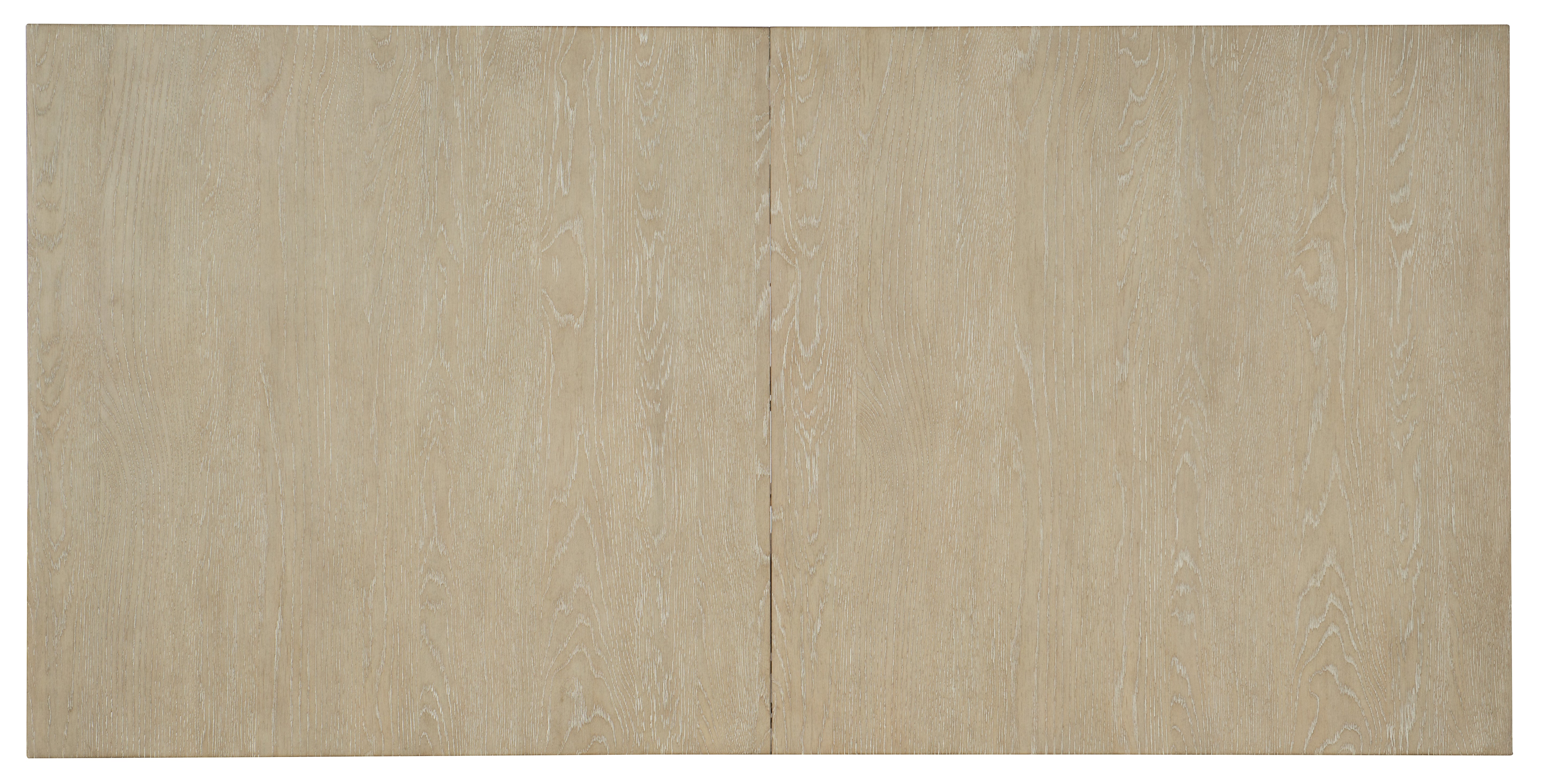 Table accommodates 2 arm chairs and six side chairs with leaf in place Finish: Table top: Terrain: a soft, taupe finish on oak veneers. Distressing includes dry brushing. Table base: Textured gesso finish with crackle. Hooker Furniture utilizes a multiple-step finish process of up to 16 finish steps. This results in an unsurpassed clarity, depth and color richness and durability to our finishes. Through hand-craftsmanship such as rubbing and padding, our finishes feel as good as they look, with a smoothness that is delightful to the touch. Hooker Furniture uses carefully chosen solid wood and select wood veneers over durable wood products in our furniture construction. Use of veneers enables more decorative looks unattainable with solid wood. Veneers are used over durable wood products such as medium density fiberboard (MDF) and particle board, made of renewable resources. MDF and particle board are used in quality furniture for areas that need to be stable, such as large surfaces. These durable wood products do not expand and contract with heat and cold and do not absorb moisture as much as solid wood, which results in stronger and longer-lasting furniture. Oak Veneers We recommend using coasters, placements and trivets when using hot containers with this item. It is also recommended to provide quick cleanup for any spills to minimize exposure to moisture. Doing so will prolong the life and look of the item and provide many years of the quality you expect. Dimension (LxWxH):42.00 x 84.00 x 29.50