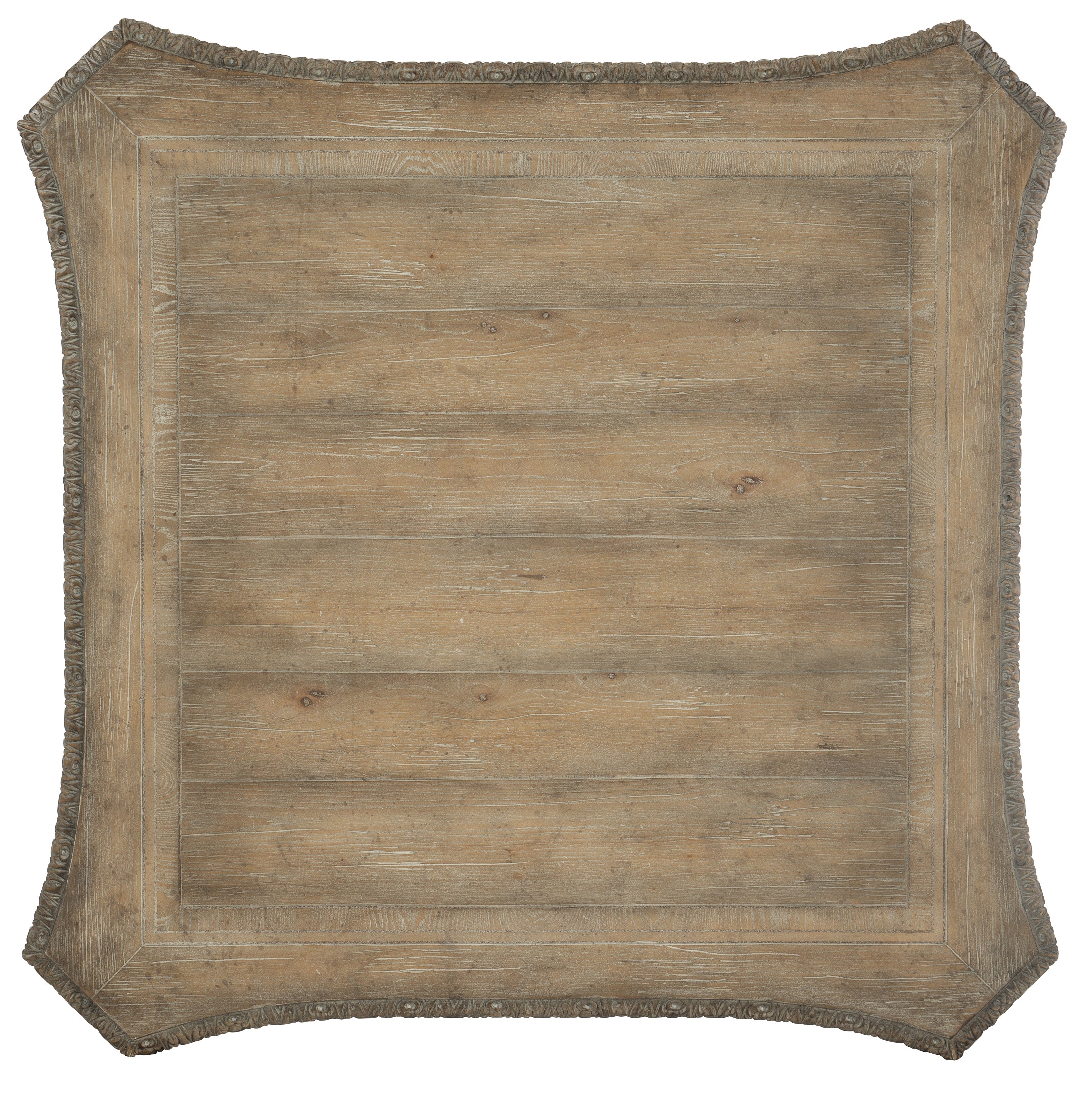 Traditional/Formal styling Finish: Antique Slate: a mid-tone brown finish with a beautiful patina. Distressing includes sandblasting, drawknife, wormholes and stone. Hooker Furniture utilizes a multiple-step finish process of up to 16 finish steps. This results in an unsurpassed clarity, depth and color richness and durability to our finishes. Through hand-craftsmanship such as rubbing and padding, our finishes feel as good as they look, with a smoothness that is delightful to the touch. Hooker Furniture uses carefully chosen solid wood and select wood veneers over durable wood products in our furniture construction. Use of veneers enables more decorative looks unattainable with solid wood. Veneers are used over durable wood products such as medium density fiberboard (MDF) and particle board, made of renewable resources. MDF and particle board are used in quality furniture for areas that need to be stable, such as large surfaces. These durable wood products do not expand and contract with heat and cold and do not absorb moisture as much as solid wood, which results in stronger and longer-lasting furniture. Pecan, Quartered Walnut, Quartered Black Walnut, Ash, Resin and Maple Veneers We recommend dusting frequently with a clean, soft, dry, lint-free cloth. Clean the surface by rubbing in the direction of the grain. We recommend polishing your furniture approximately every six months using a clean, soft, lint-free cloth and rubbing the polish in the direction of the grain. Guardsman furniture polish or any furniture polish that doesn't contain silicone is recommended. Dimension (LxWxH):49.25 x 49.25 x 22.50