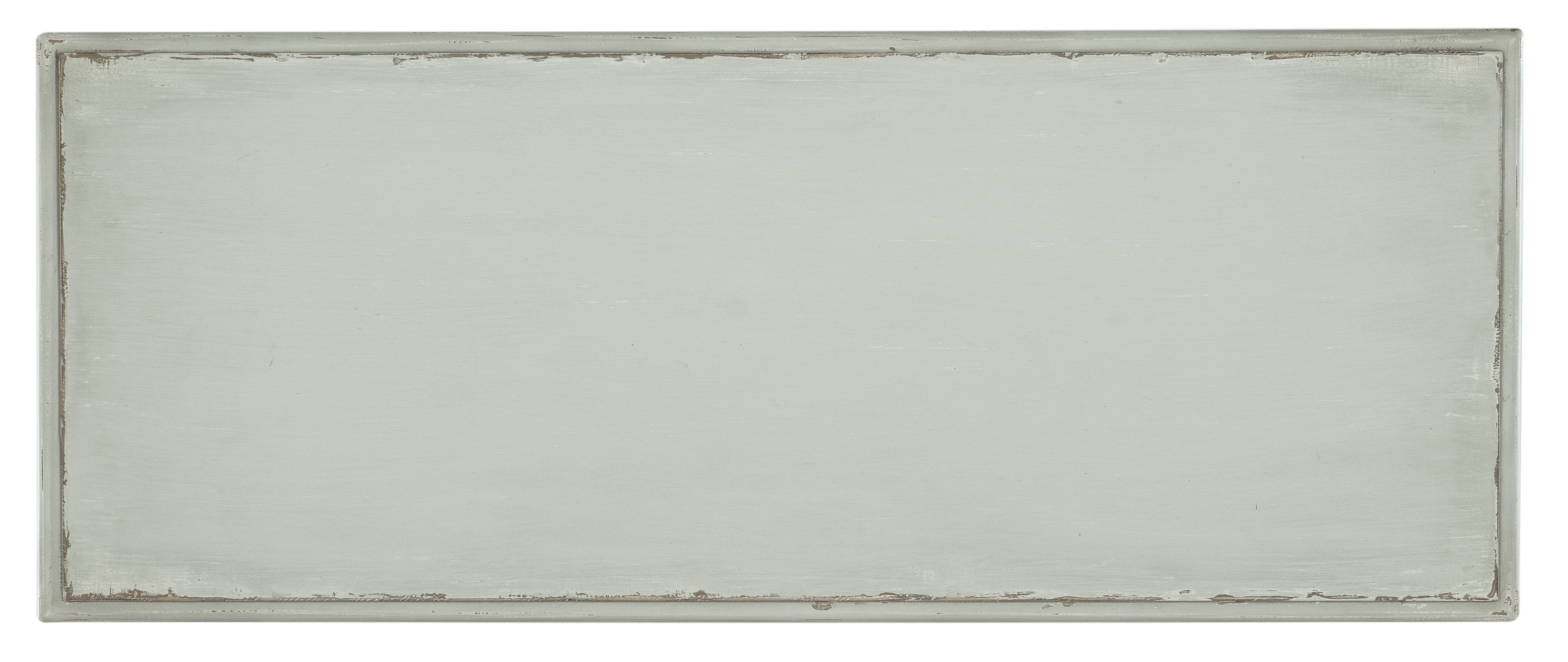 Removable tray with dividers inside for additional organization Finish: Haint Blue: A soft blue color which can be found on the ceilings of porches and entryways, window shutters and doors. Inspired by Gullah folklore brought to the American South more than 200 years ago to keep "haints" or spirits, which could not cross water, from entering the home or dwelling. Bail pull hardware features antique bronze color. Hooker Furniture utilizes a multiple-step finish process of up to 16 finish steps. This results in an unsurpassed clarity, depth and color richness and durability to our finishes. Through hand-craftsmanship such as rubbing and padding, our finishes feel as good as they look, with a smoothness that is delightful to the touch. Hooker Furniture uses carefully chosen solid wood and select wood veneers over durable wood products in our furniture construction. Use of veneers enables more decorative looks unattainable with solid wood. Veneers are used over durable wood products such as medium density fiberboard (MDF) and particle board, made of renewable resources. MDF and particle board are used in quality furniture for areas that need to be stable, such as large surfaces. These durable wood products do not expand and contract with heat and cold and do not absorb moisture as much as solid wood, which results in stronger and longer-lasting furniture. Maple Veneers Hooker Furniture offers full height, full depth and full width drawers for maximum storage capacity. All drawers have strong, time-tested English or French dovetail construction, for years of problem-free use. Plywood drawer bottoms are attached to plywood drawer sides for strength and durability. Metal side guides or wood on wood guide systems operate smoothly. Dimension (LxWxH):20.00 x 50.00 x 22.00