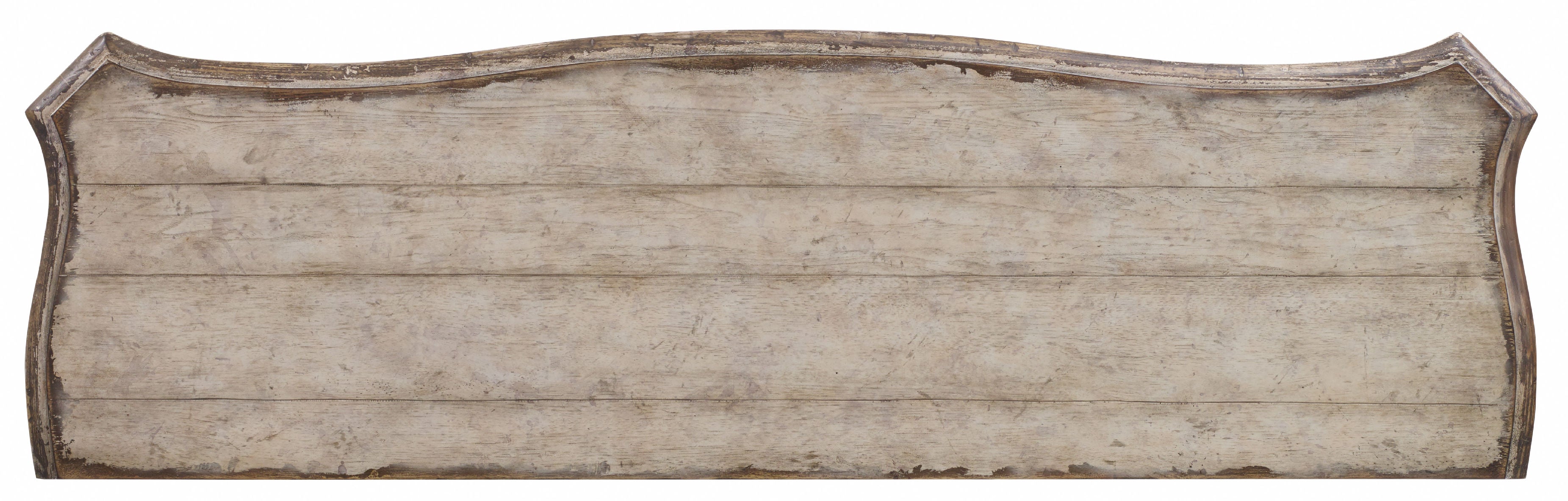 Two bottom drawers are cedar-lined Finish: The Paris Vintage finish is a distressed vintage white with fretwork overlay on select pieces. Custom-designed, generously scaled, burnished bronze drawer pulls and hardware is inspired by antiques. Distressing includes scraping lines, sloping lines, rasping and wormholes. Hooker Furniture utilizes a multiple-step finish process of up to 16 finish steps. This results in an unsurpassed clarity, depth and color richness and durability to our finishes. Through hand-craftsmanship such as rubbing and padding, our finishes feel as good as they look, with a smoothness that is delightful to the touch. Hooker Furniture uses carefully chosen solid wood and select wood veneers over durable wood products in our furniture construction. Use of veneers enables more decorative looks unattainable with solid wood. Veneers are used over durable wood products such as medium density fiberboard (MDF) and particle board, made of renewable resources. MDF and particle board are used in quality furniture for areas that need to be stable, such as large surfaces. These durable wood products do not expand and contract with heat and cold and do not absorb moisture as much as solid wood, which results in stronger and longer-lasting furniture. Pecan and Cedar Veneers, Resin, Felt Panel and Solid-Wood Edge Top We recommend dusting frequently with a clean, soft, dry, lint-free cloth. Clean the surface by rubbing in the direction of the grain. We recommend polishing your furniture approximately every six months using a clean, soft, lint-free cloth and rubbing the polish in the direction of the grain. Guardsman furniture polish or any furniture polish that doesn't contain silicone is recommended. Hooker Furniture offers full height, full depth and full width drawers for maximum storage capacity. All drawers have strong, time-tested English or French dovetail construction, for years of problem-free use. Plywood drawer bottoms are attached to plywood drawer sides for strength and durability. Metal side guides or wood on wood guide systems operate smoothly. Dimension (LxWxH):20.00 x 68.00 x 40.50