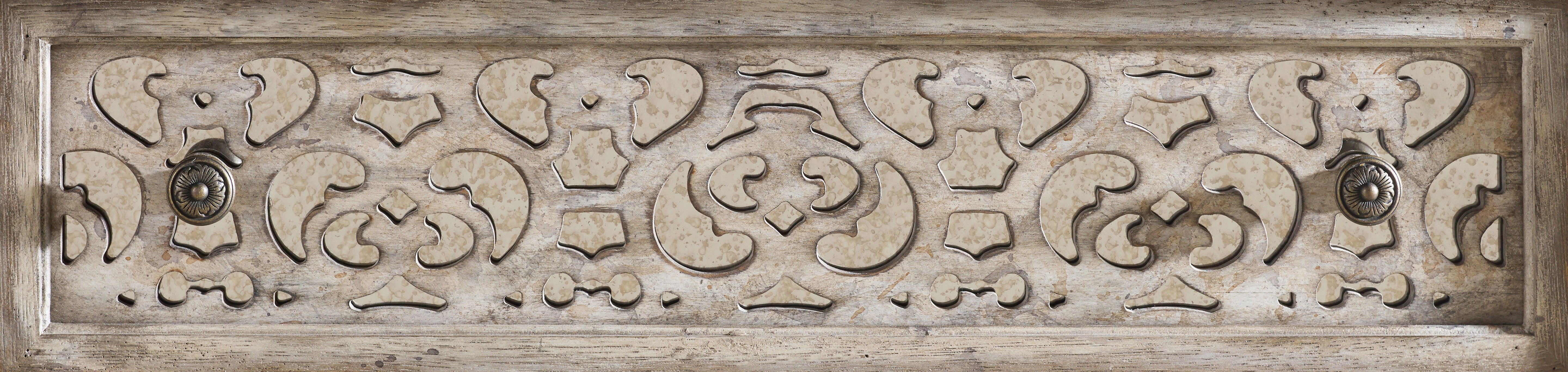 Power supply Finish: A combination of Caramel Froth and Paris Vintage. Pecky pecan veneers are warmed by a soft amber color and a touch of aged white paint to highlight distinctive grains and moldings in the Caramel Froth finish. The Paris Vintage finish is a distressed vintage white with fretwork overlay on select pieces. Custom-designed, generously scaled, burnished bronze drawer pulls and hardware is inspired by antiques. Distressing includes scraping lines, sloping lines and rasping. Hooker Furniture utilizes a multiple-step finish process of up to 16 finish steps. This results in an unsurpassed clarity, depth and color richness and durability to our finishes. Through hand-craftsmanship such as rubbing and padding, our finishes feel as good as they look, with a smoothness that is delightful to the touch. Hooker Furniture uses carefully chosen solid wood and select wood veneers over durable wood products in our furniture construction. Use of veneers enables more decorative looks unattainable with solid wood. Veneers are used over durable wood products such as medium density fiberboard (MDF) and particle board, made of renewable resources. MDF and particle board are used in quality furniture for areas that need to be stable, such as large surfaces. These durable wood products do not expand and contract with heat and cold and do not absorb moisture as much as solid wood, which results in stronger and longer-lasting furniture. Pecan Veneer, Resin, Anqitue Mirror, Wallpaper and Solid-Wood Edge Top We recommend dusting frequently with a clean, soft, dry, lint-free cloth. Clean the surface by rubbing in the direction of the grain. We recommend polishing your furniture approximately every six months using a clean, soft, lint-free cloth and rubbing the polish in the direction of the grain. Guardsman furniture polish or any furniture polish that doesn't contain silicone is recommended. Hooker Furniture offers full height, full depth and full width drawers for maximum storage capacity. All drawers have strong, time-tested English or French dovetail construction, for years of problem-free use. Plywood drawer bottoms are attached to plywood drawer sides for strength and durability. Metal side guides or wood on wood guide systems operate smoothly. Dimension (LxWxH):20.00 x 37.00 x 33.00