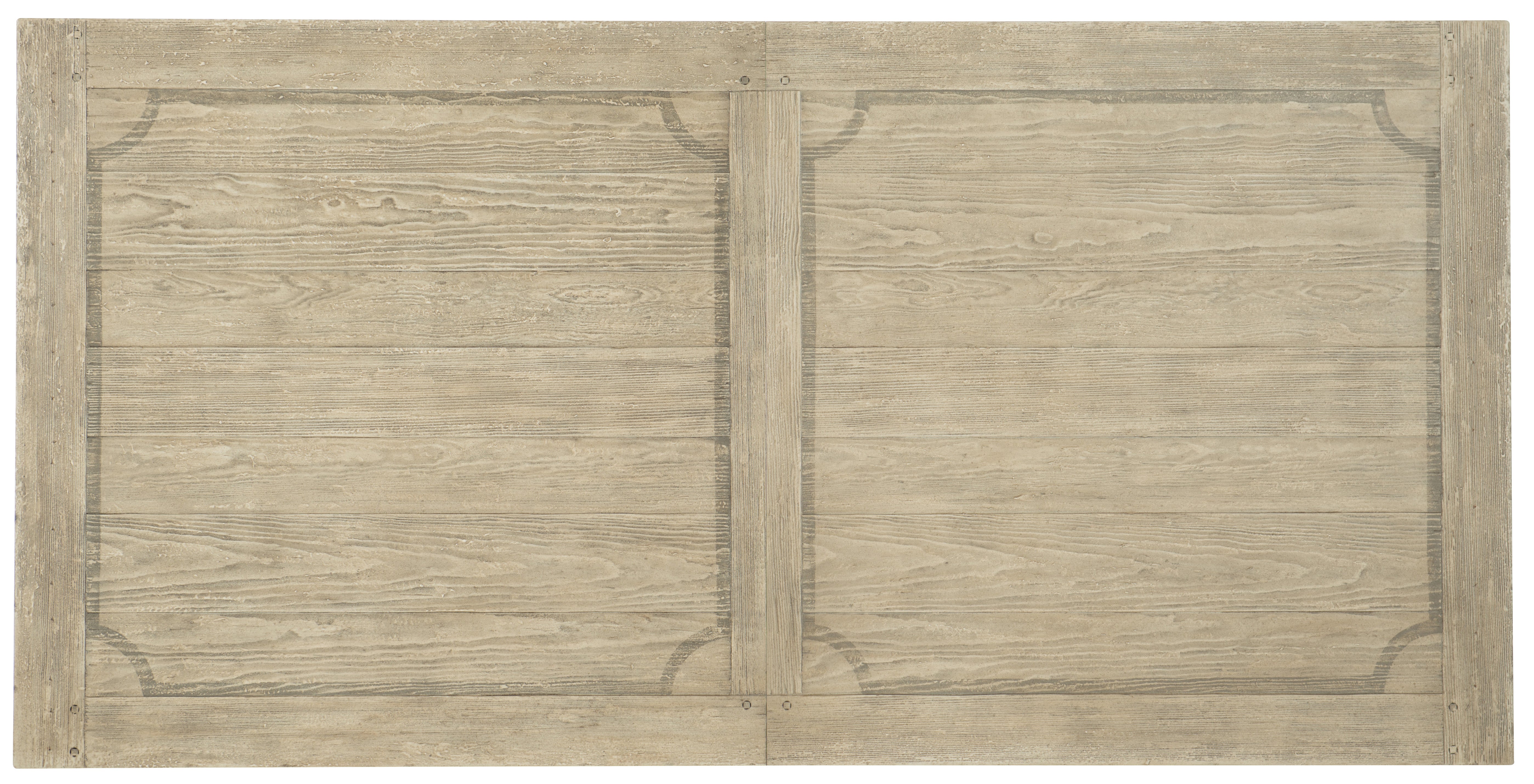 Both leaves extend table to 120-inches long Finish: Black base, Flaky White top. Distressing includes rasping, hand chiseling, nail holes, wire brushing and emulsion. Hooker Furniture utilizes a multiple-step finish process of up to 16 finish steps. This results in an unsurpassed clarity, depth and color richness and durability to our finishes. Through hand-craftsmanship such as rubbing and padding, our finishes feel as good as they look, with a smoothness that is delightful to the touch. Hooker Furniture uses carefully chosen solid wood and select wood veneers over durable wood products in our furniture construction. Use of veneers enables more decorative looks unattainable with solid wood. Veneers are used over durable wood products such as medium density fiberboard (MDF) and particle board, made of renewable resources. MDF and particle board are used in quality furniture for areas that need to be stable, such as large surfaces. These durable wood products do not expand and contract with heat and cold and do not absorb moisture as much as solid wood, which results in stronger and longer-lasting furniture. Pine Veneers with Solid-Wood Edge Top We recommend using coasters, placements and trivets when using hot containers with this item. It is also recommended to provide quick cleanup for any spills to minimize exposure to moisture. Doing so will prolong the life and look of the item and provide many years of the quality you expect. Dimension (LxWxH):42.00 x 84.00 x 30.00