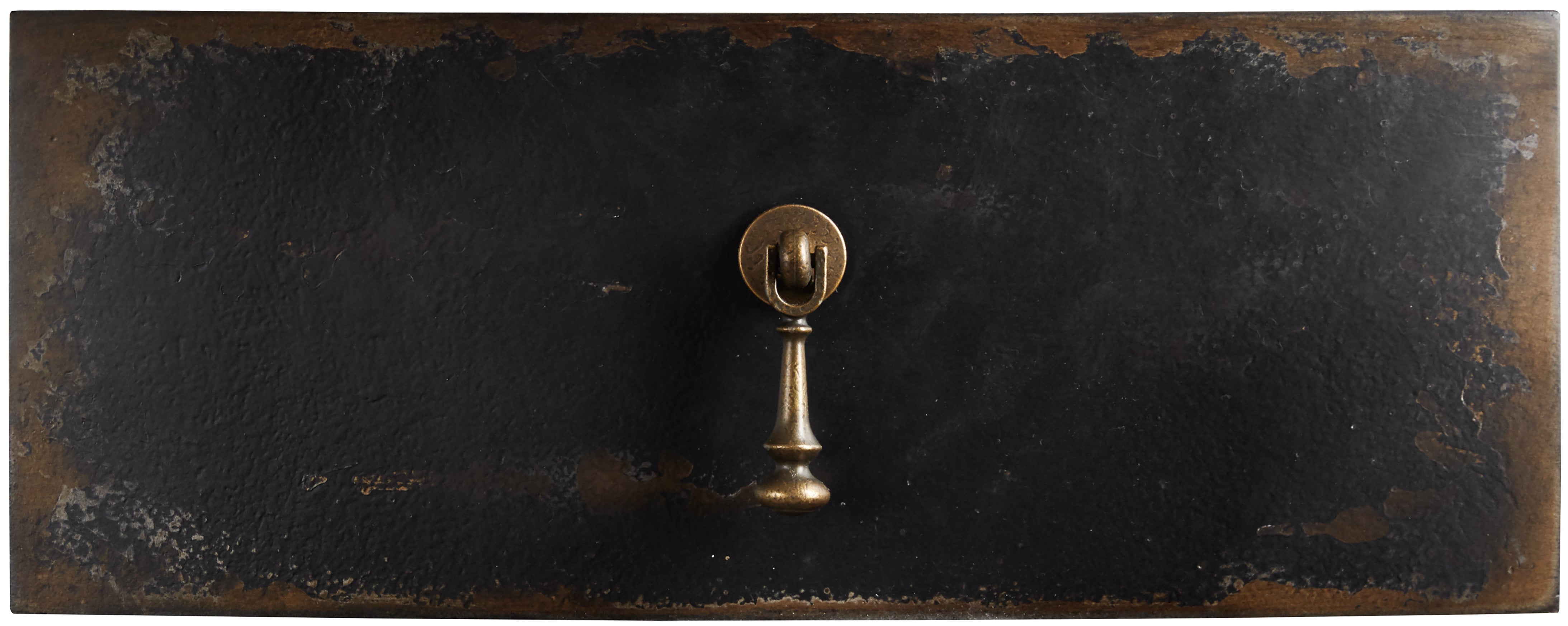Cord clip Finish: Black finish. Distressing includes wormholes, rasping, multi-layer rub through and emulsion. Burnished brass hardware. Hooker Furniture utilizes a multiple-step finish process of up to 16 finish steps. This results in an unsurpassed clarity, depth and color richness and durability to our finishes. Through hand-craftsmanship such as rubbing and padding, our finishes feel as good as they look, with a smoothness that is delightful to the touch. Hooker Furniture uses carefully chosen solid wood and select wood veneers over durable wood products in our furniture construction. Use of veneers enables more decorative looks unattainable with solid wood. Veneers are used over durable wood products such as medium density fiberboard (MDF) and particle board, made of renewable resources. MDF and particle board are used in quality furniture for areas that need to be stable, such as large surfaces. These durable wood products do not expand and contract with heat and cold and do not absorb moisture as much as solid wood, which results in stronger and longer-lasting furniture. Maple Veneers and Solid-Wood Edge Top We recommend dusting frequently with a clean, soft, dry, lint-free cloth. Clean the surface by rubbing in the direction of the grain. We recommend polishing your furniture approximately every six months using a clean, soft, lint-free cloth and rubbing the polish in the direction of the grain. Guardsman furniture polish or any furniture polish that doesn't contain silicone is recommended. Hooker Furniture offers full height, full depth and full width drawers for maximum storage capacity. All drawers have strong, time-tested English or French dovetail construction, for years of problem-free use. Plywood drawer bottoms are attached to plywood drawer sides for strength and durability. Metal side guides or wood on wood guide systems operate smoothly. Dimension (LxWxH):21.00 x 20.00 x 29.00