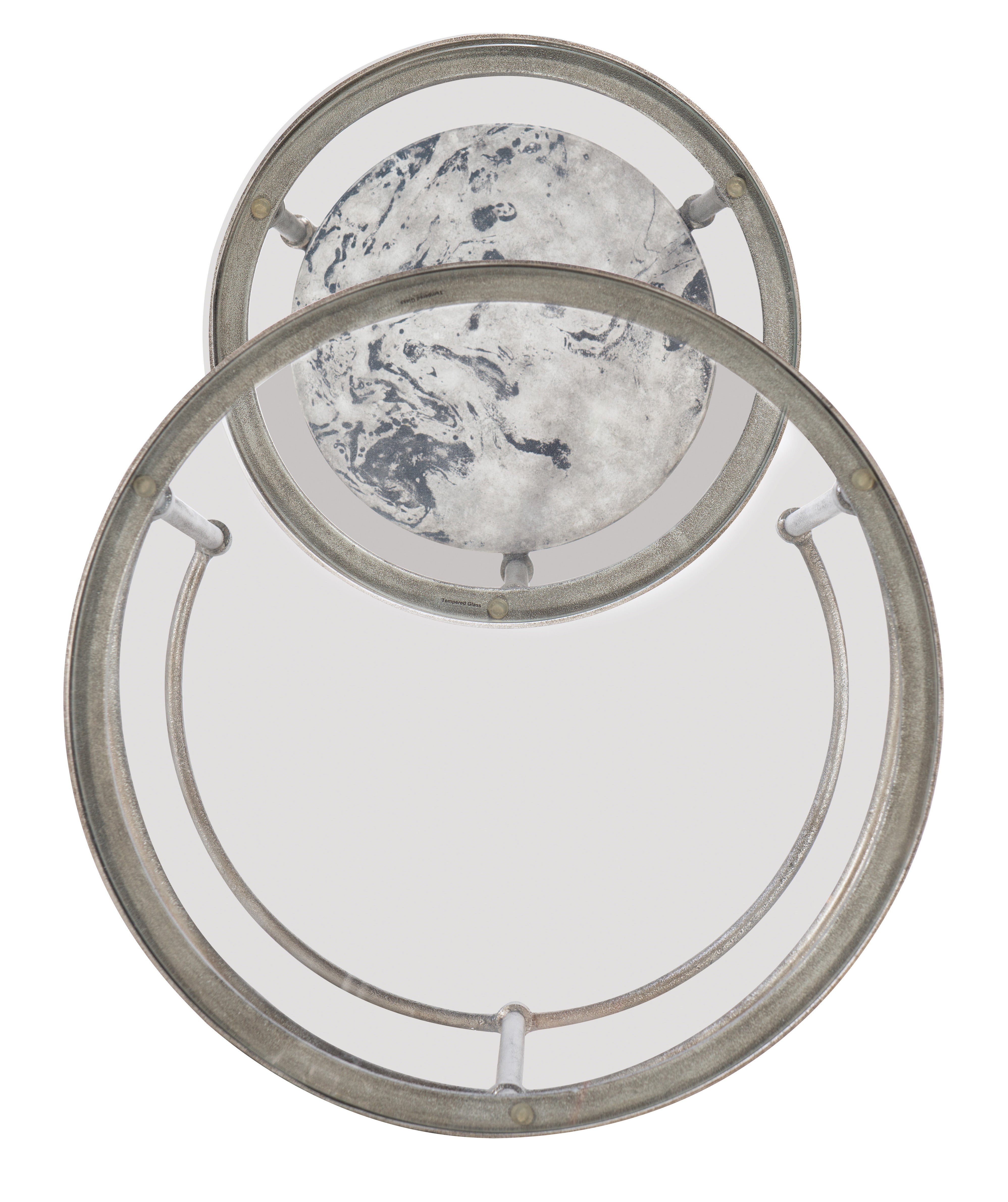 Glass top Finish: Champagne metal frame with gray and black toned concrete N/A Concrete with Metal Tubing, Metal Sheet and Glass We recommend dusting frequently with a clean, soft, dry, lint-free cloth. Clean the surface by rubbing in the direction of the grain. We recommend polishing your furniture approximately every six months using a clean, soft, lint-free cloth and rubbing the polish in the direction of the grain. Guardsman furniture polish or any furniture polish that doesn't contain silicone is recommended. Dimension (LxWxH):19.00 x 19.00 x 24.00