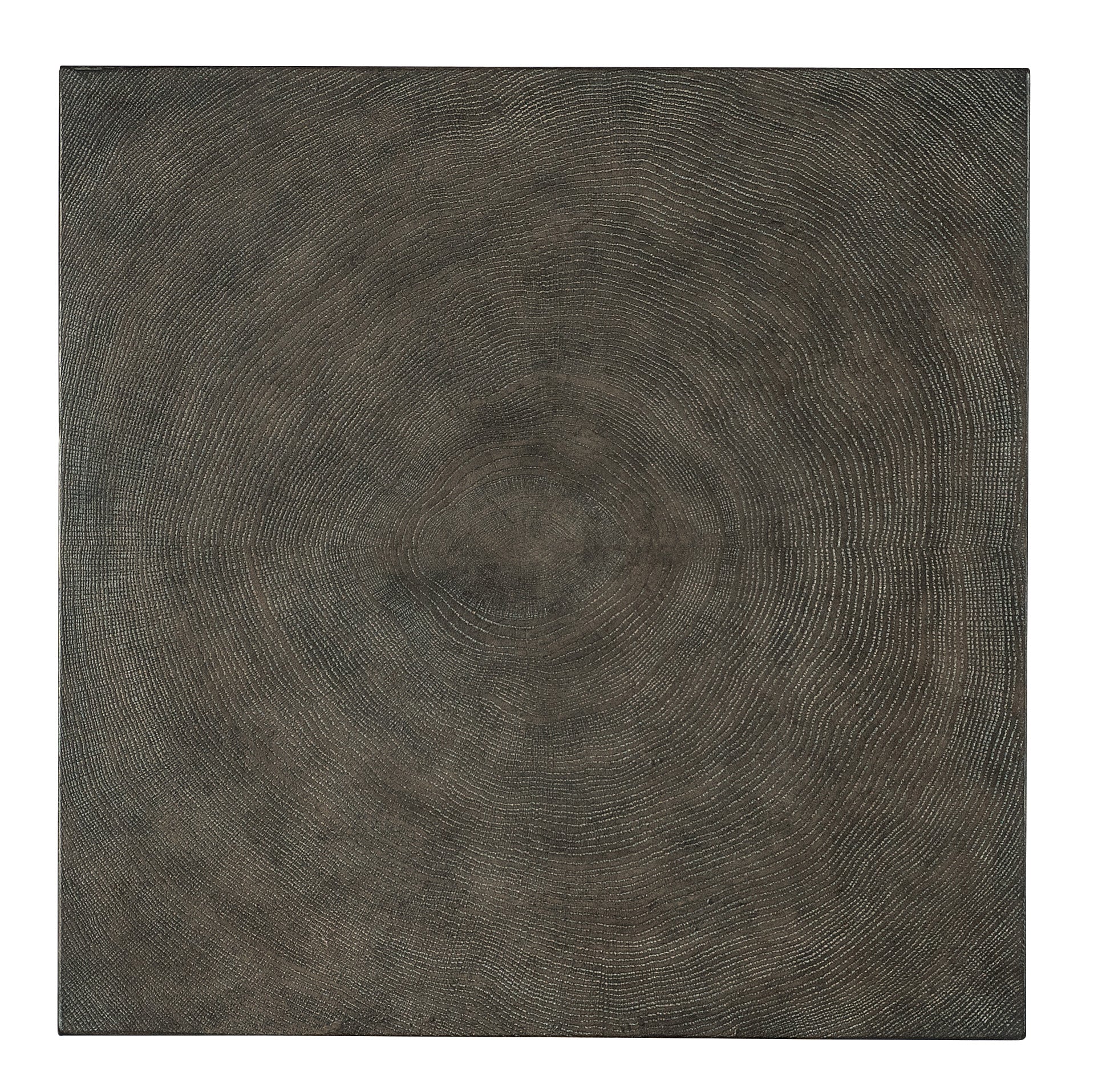 Angular and architectural, the 22-inch-square Twister Table is crafted of Pine Veneers and resin with a distressed dark finish and twist base.
