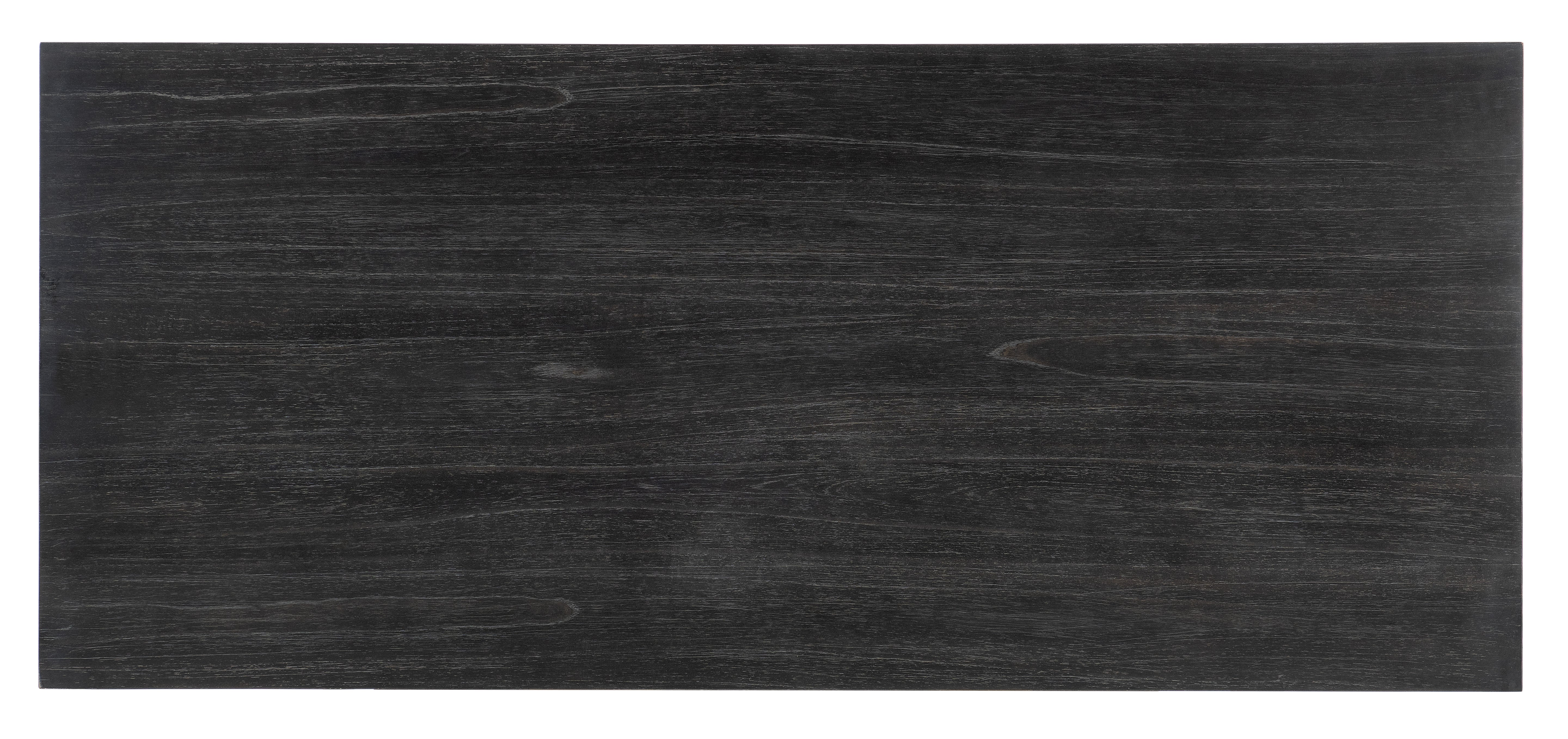 Set a youthful, energetic tone in your work space with the Commerce & Market Writing Desk, crafted of Mindi Veneers with a black finish with the wood grain showing through. The organic silhouette features 3 drawers, two removable partitions with both the left and right-side drawers and a pencil tray and mouse pad that can be used in either the left or right-side drawer. The drop-front center drawer has a cut-out for wire management.