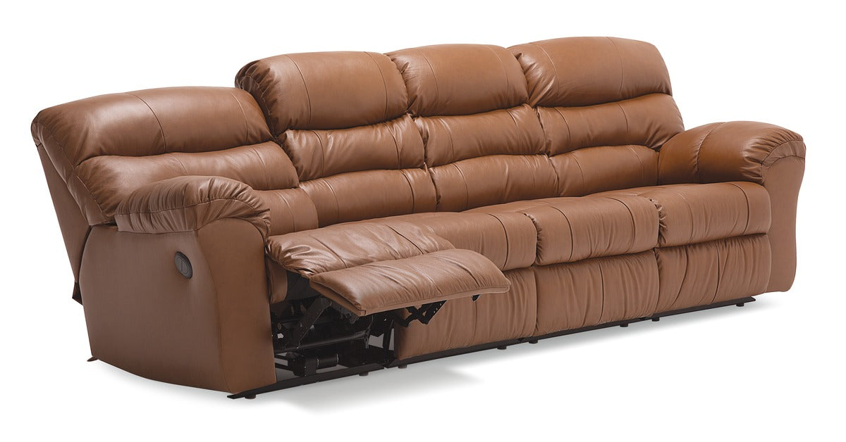 The Durant features a triple bolster back, which provides comfort and style. Feel the extra support and comfort of the full chaise seating for ultimate relaxation. Delivering extreme comfort with super soft blown fiber back cushions and pillow-top arms, this collection is all about coziness and it provides the perfect spot to nestle into. The reclining function of the Durant is easily controlled with an outside handle for manual or a power toggle switch for custom relaxation. Feel content and put your feet up with this transitional style - the perfect addition to any family room that demands high functioning comfort.