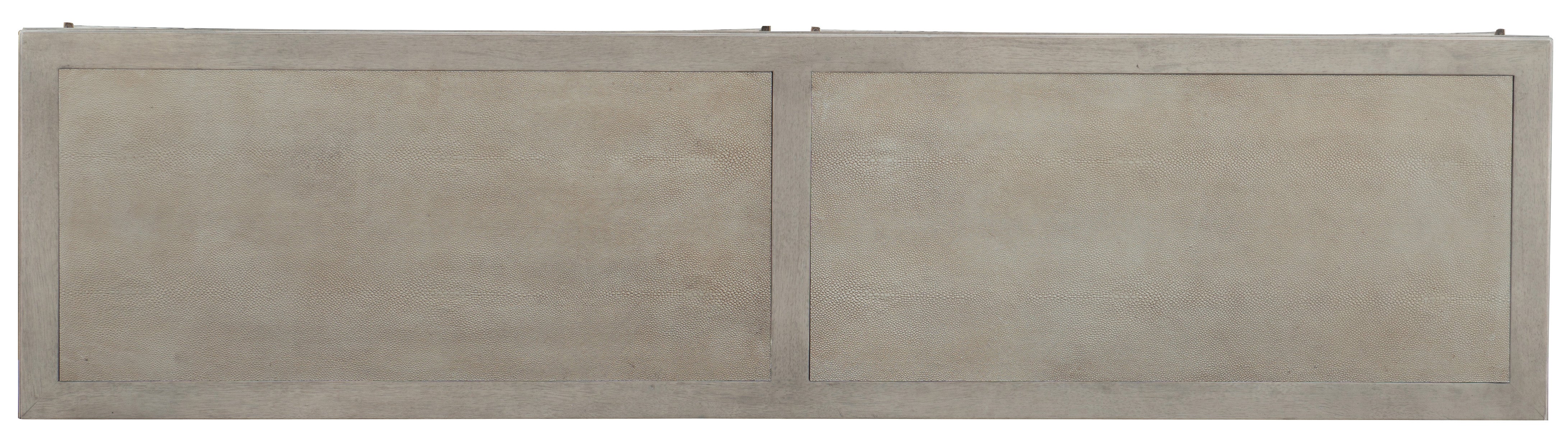 Ventilated back panel Finish: A serene gray beige finish applied to lightly sand-blasted walnut veneer for an organic and textured look. Distressing includes wire brushing. Hooker Furniture utilizes a multiple-step finish process of up to 16 finish steps. This results in an unsurpassed clarity, depth and color richness and durability to our finishes. Through hand-craftsmanship such as rubbing and padding, our finishes feel as good as they look, with a smoothness that is delightful to the touch. Hooker Furniture uses carefully chosen solid wood and select wood veneers over durable wood products in our furniture construction. Use of veneers enables more decorative looks unattainable with solid wood. Veneers are used over durable wood products such as medium density fiberboard (MDF) and particle board, made of renewable resources. MDF and particle board are used in quality furniture for areas that need to be stable, such as large surfaces. These durable wood products do not expand and contract with heat and cold and do not absorb moisture as much as solid wood, which results in stronger and longer-lasting furniture. Walnut Veneers and Faux Shagreen We recommend dusting frequently with a clean, soft, dry, lint-free cloth. Clean the surface by rubbing in the direction of the grain. We recommend polishing your furniture approximately every six months using a clean, soft, lint-free cloth and rubbing the polish in the direction of the grain. Guardsman furniture polish or any furniture polish that doesn't contain silicone is recommended. Hooker Furniture offers full height, full depth and full width drawers for maximum storage capacity. All drawers have strong, time-tested English or French dovetail construction, for years of problem-free use. Plywood drawer bottoms are attached to plywood drawer sides for strength and durability. Metal side guides or wood on wood guide systems operate smoothly. Dimension (LxWxH):18.00 x 71.00 x 36.25