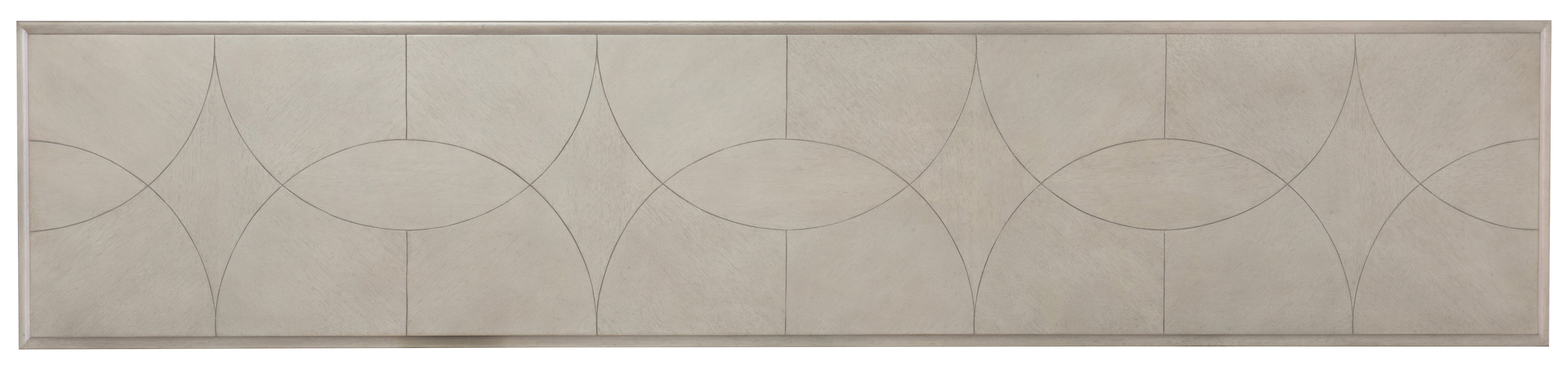 Metal base Finish: A serene gray beige finish applied to lightly sand-blasted walnut veneer for an organic and textured look. Champagne silver finish on the metal elements and hardware. Custom-designed knob hardware in a champagne silver finish. Distressing includes wire brushing on wood surfaces and texturing on metal. Hooker Furniture utilizes a multiple-step finish process of up to 16 finish steps. This results in an unsurpassed clarity, depth and color richness and durability to our finishes. Through hand-craftsmanship such as rubbing and padding, our finishes feel as good as they look, with a smoothness that is delightful to the touch. Hooker Furniture uses carefully chosen solid wood and select wood veneers over durable wood products in our furniture construction. Use of veneers enables more decorative looks unattainable with solid wood. Veneers are used over durable wood products such as medium density fiberboard (MDF) and particle board, made of renewable resources. MDF and particle board are used in quality furniture for areas that need to be stable, such as large surfaces. These durable wood products do not expand and contract with heat and cold and do not absorb moisture as much as solid wood, which results in stronger and longer-lasting furniture. Basswood Veneers and Metal We recommend dusting frequently with a clean, soft, dry, lint-free cloth. Clean the surface by rubbing in the direction of the grain. We recommend polishing your furniture approximately every six months using a clean, soft, lint-free cloth and rubbing the polish in the direction of the grain. Guardsman furniture polish or any furniture polish that doesn't contain silicone is recommended. Dimension (LxWxH):16.50 x 77.00 x 33.25