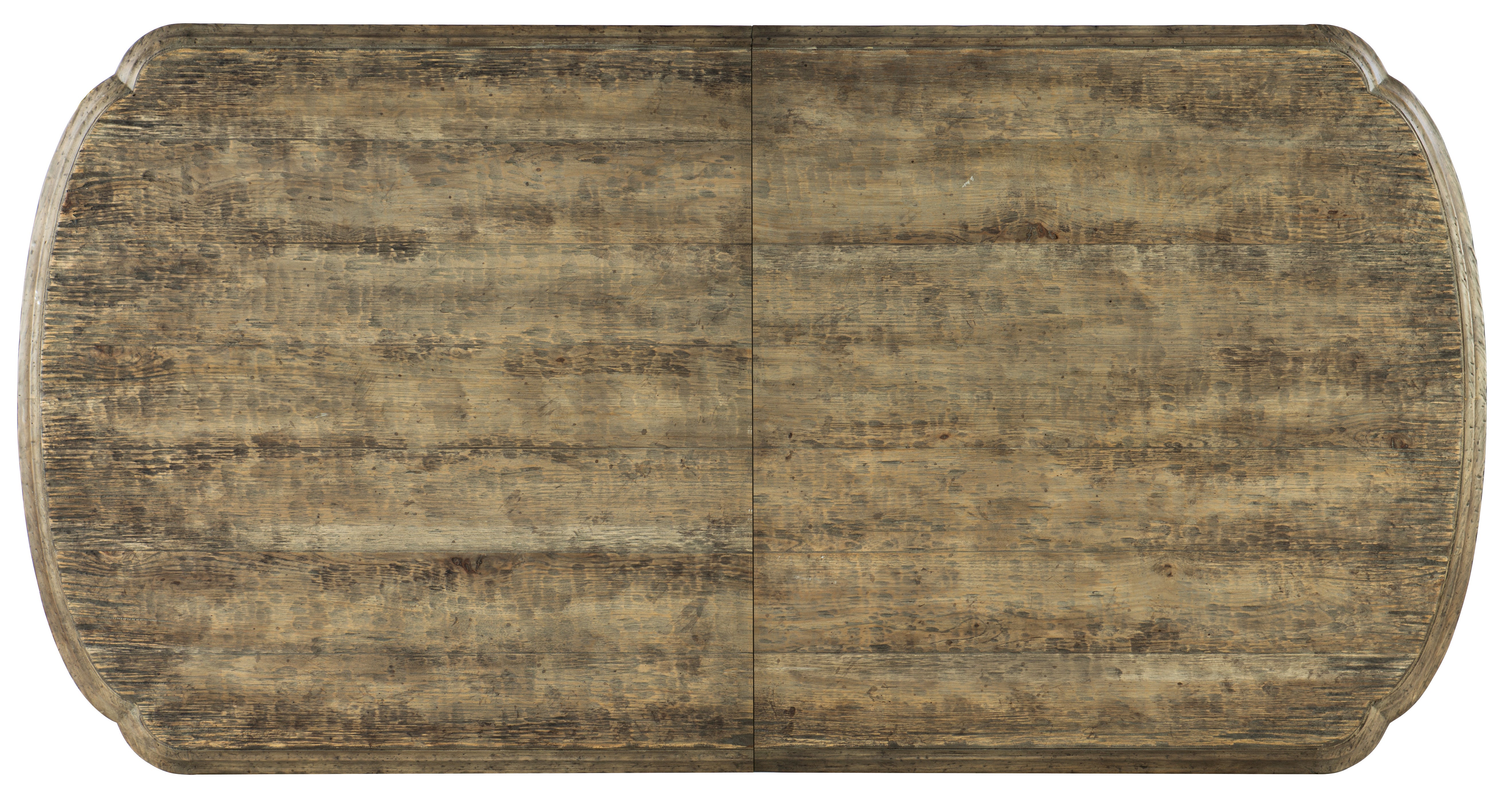 Gather in casual, relaxing grandeur with the Le Vieux Double Pedestal Table, an iconic silhouette of laid-back luxury. Inspired by the expansive but down-to-earth Hill Country of Texas, the double-pedestal base on the table is reminiscent of architectural brackets and arches, and makes the Le Vieux memorable. The base is finished in a Flemish Paint, and the top is finished in Barnwood, a multi-tone brown with heavy distressing emulating reclaimed wood. Accommodates two arm chairs and four side chairs without the two 18-inch leaves. With one or two leaves, the table accommodates two arm chairs and up to six side chairs.