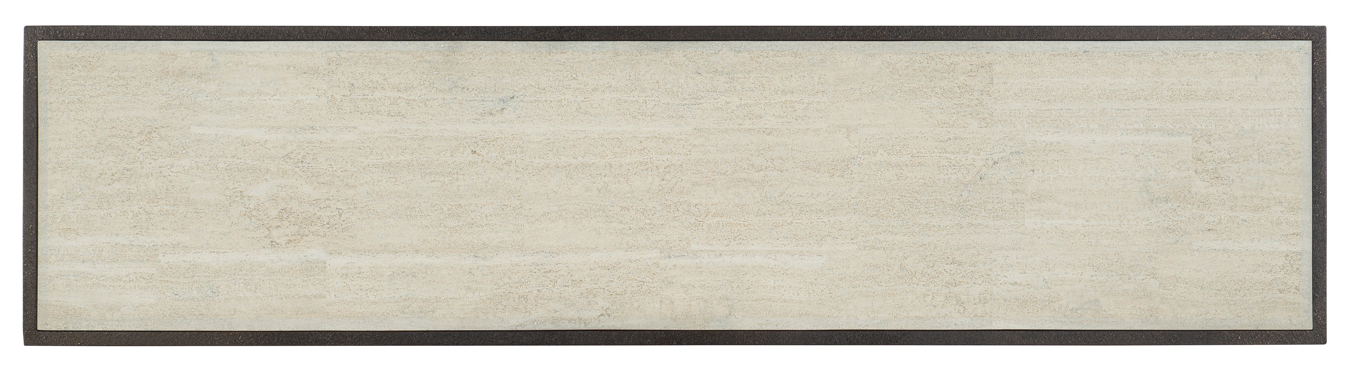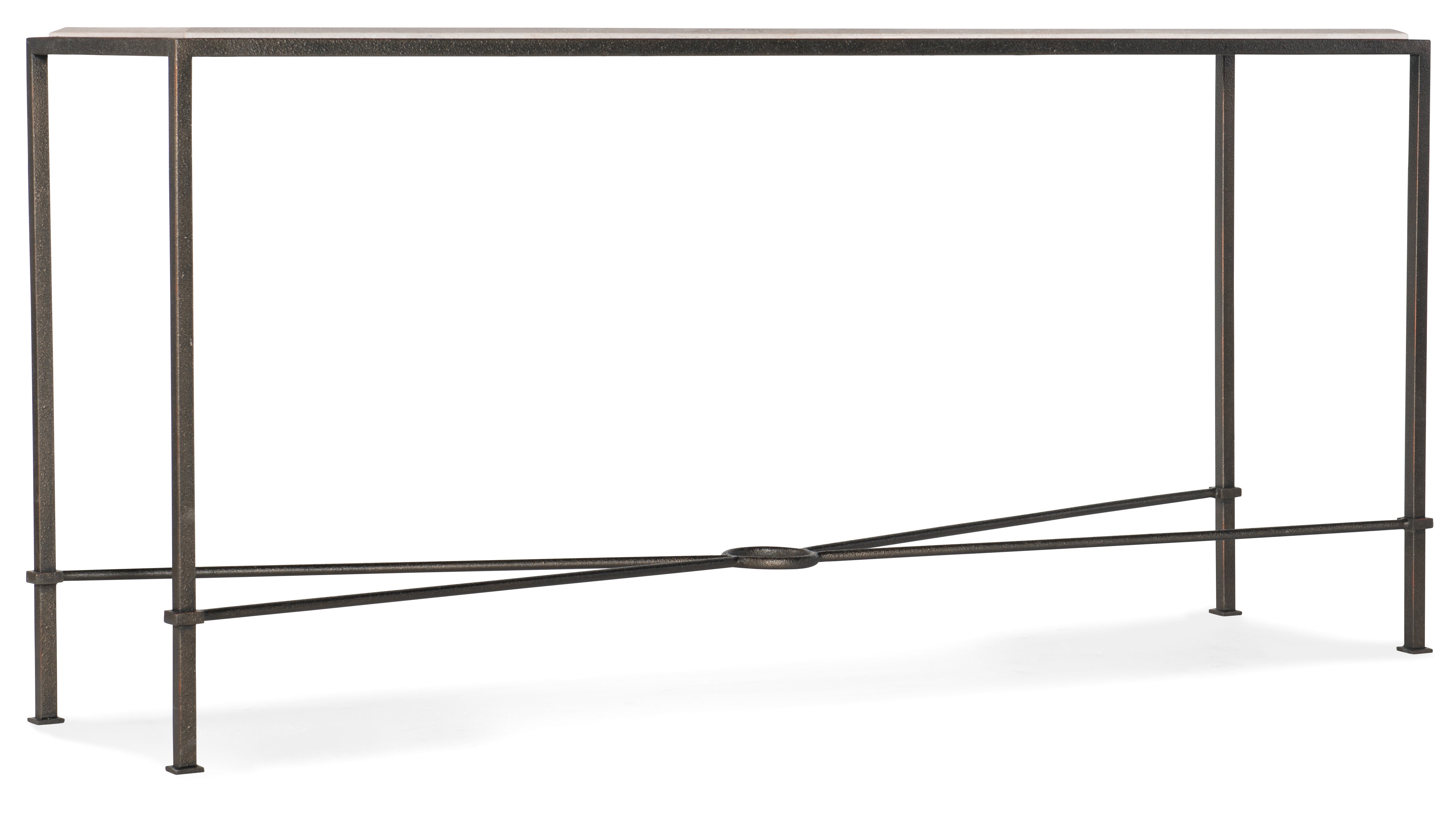 In a light-and-airy style that’s a breath of fresh air, this distinctive console table has a dark charcoal textured metal frame, base and X-stretcher and a creamy beige marble top in a blend of neutrals to fit in a wide range of interiors. The convenient narrow rectangle shape is only 16 inches deep, making it the perfect choice for smaller spaces.