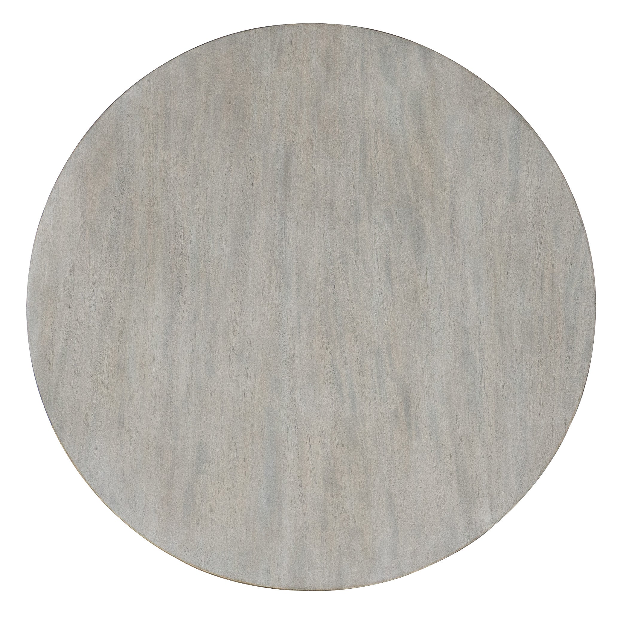 Earthy texture meets glam with the Guilded Accent Table in this stepped design with contrasting silver leaf insets. Gray-finished Primavera Veneers are paired with silver leaf accents on the stepped insets. Featuring an appealing round shape, the table has casters for easy mobility.