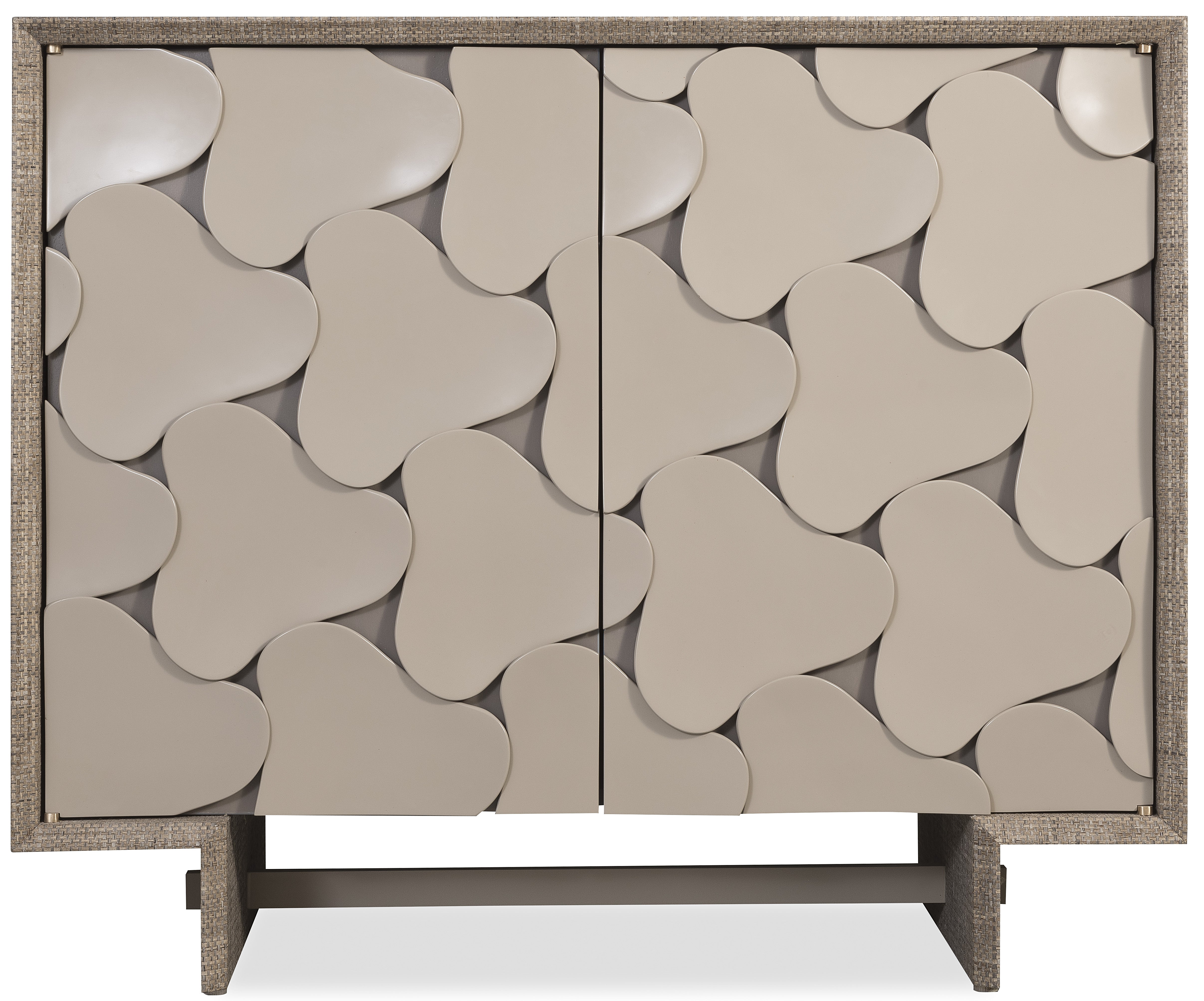Gray painted interior Finish: Gray exterior with gray appliques on door fronts Hooker Furniture utilizes a multiple-step finish process of up to 16 finish steps. This results in an unsurpassed clarity, depth and color richness and durability to our finishes. Through hand-craftsmanship such as rubbing and padding, our finishes feel as good as they look, with a smoothness that is delightful to the touch. Hooker Furniture uses carefully chosen solid wood and select wood veneers over durable wood products in our furniture construction. Use of veneers enables more decorative looks unattainable with solid wood. Veneers are used over durable wood products such as medium density fiberboard (MDF) and particle board, made of renewable resources. MDF and particle board are used in quality furniture for areas that need to be stable, such as large surfaces. These durable wood products do not expand and contract with heat and cold and do not absorb moisture as much as solid wood, which results in stronger and longer-lasting furniture. Wood and Resin We recommend dusting frequently with a clean, soft, dry, lint-free cloth. Clean the surface by rubbing in the direction of the grain. We recommend polishing your furniture approximately every six months using a clean, soft, lint-free cloth and rubbing the polish in the direction of the grain. Guardsman furniture polish or any furniture polish that doesn't contain silicone is recommended. Dimension (LxWxH):20.75 x 41.00 x 34.25