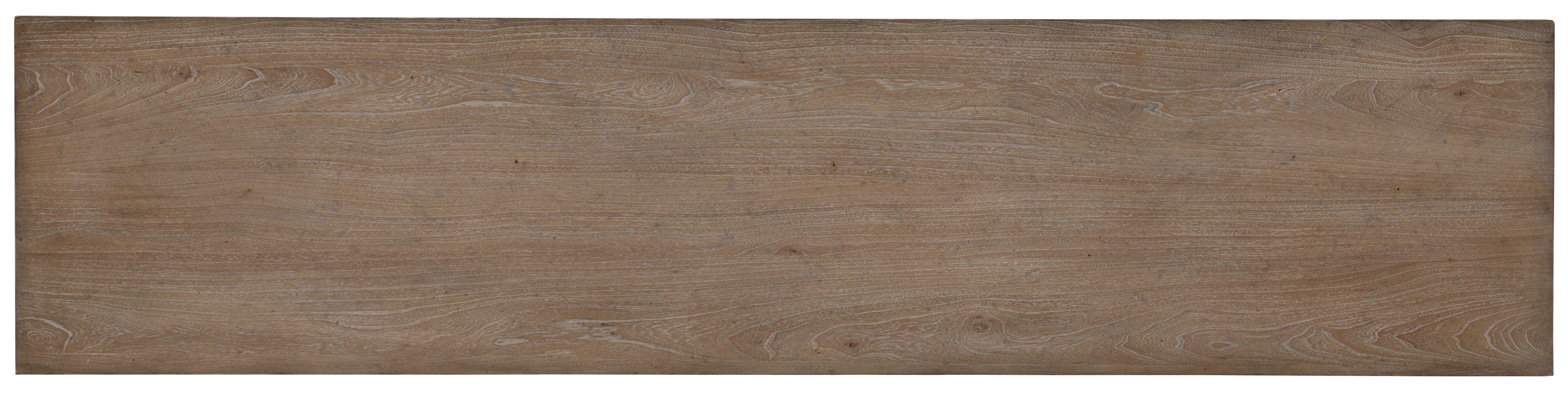 Soft closing hinges Finish: Natural finish on case with contrasting gray finish on door fronts. Distressing includes rasping. Hooker Furniture utilizes a multiple-step finish process of up to 16 finish steps. This results in an unsurpassed clarity, depth and color richness and durability to our finishes. Through hand-craftsmanship such as rubbing and padding, our finishes feel as good as they look, with a smoothness that is delightful to the touch. Hooker Furniture uses carefully chosen solid wood and select wood veneers over durable wood products in our furniture construction. Use of veneers enables more decorative looks unattainable with solid wood. Veneers are used over durable wood products such as medium density fiberboard (MDF) and particle board, made of renewable resources. MDF and particle board are used in quality furniture for areas that need to be stable, such as large surfaces. These durable wood products do not expand and contract with heat and cold and do not absorb moisture as much as solid wood, which results in stronger and longer-lasting furniture. Elm, Maple and Black Walnut Veneers with Metal Base We recommend dusting frequently with a clean, soft, dry, lint-free cloth. Clean the surface by rubbing in the direction of the grain. We recommend polishing your furniture approximately every six months using a clean, soft, lint-free cloth and rubbing the polish in the direction of the grain. Guardsman furniture polish or any furniture polish that doesn't contain silicone is recommended. Dimension (LxWxH):21.50 x 86.00 x 38.00