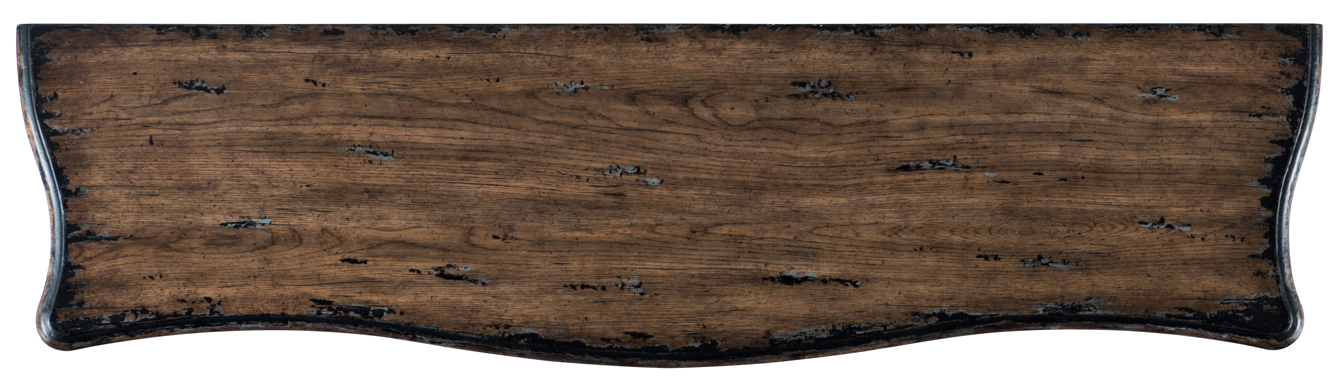 Ventilated back panel Finish: Porte Noir: a dark, black painted finish rich brown undertones, rubbed to a medium sheen, with areas of heavy rub thru and distressing to review a honey tone wood color. Distressing includes drawknife, wormholes and rasping. Decorative flower hardware. Hooker Furniture utilizes a multiple-step finish process of up to 16 finish steps. This results in an unsurpassed clarity, depth and color richness and durability to our finishes. Through hand-craftsmanship such as rubbing and padding, our finishes feel as good as they look, with a smoothness that is delightful to the touch. Hooker Furniture uses carefully chosen solid wood and select wood veneers over durable wood products in our furniture construction. Use of veneers enables more decorative looks unattainable with solid wood. Veneers are used over durable wood products such as medium density fiberboard (MDF) and particle board, made of renewable resources. MDF and particle board are used in quality furniture for areas that need to be stable, such as large surfaces. These durable wood products do not expand and contract with heat and cold and do not absorb moisture as much as solid wood, which results in stronger and longer-lasting furniture. Oak Veneers and Resin We recommend dusting frequently with a clean, soft, dry, lint-free cloth. Clean the surface by rubbing in the direction of the grain. We recommend polishing your furniture approximately every six months using a clean, soft, lint-free cloth and rubbing the polish in the direction of the grain. Guardsman furniture polish or any furniture polish that doesn't contain silicone is recommended. Dimension (LxWxH):19.75 x 73.00 x 36.00