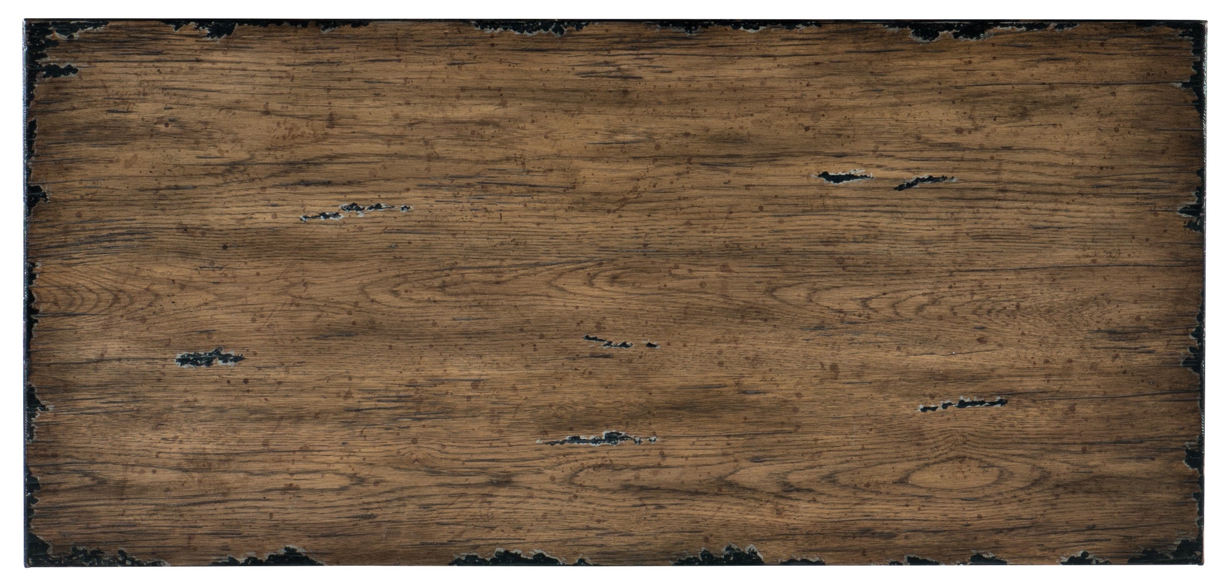 Finger grooves on the sides of the drawers Finish: Porte Noir: a dark, black painted finish rich brown undertones, rubbed to a medium sheen, with areas of heavy rub thru and distressing to review a honey tone wood color. Distressing includes drawknife, wormholes, rasping and graver. Decorative flower hardware. Hooker Furniture utilizes a multiple-step finish process of up to 16 finish steps. This results in an unsurpassed clarity, depth and color richness and durability to our finishes. Through hand-craftsmanship such as rubbing and padding, our finishes feel as good as they look, with a smoothness that is delightful to the touch. Hooker Furniture uses carefully chosen solid wood and select wood veneers over durable wood products in our furniture construction. Use of veneers enables more decorative looks unattainable with solid wood. Veneers are used over durable wood products such as medium density fiberboard (MDF) and particle board, made of renewable resources. MDF and particle board are used in quality furniture for areas that need to be stable, such as large surfaces. These durable wood products do not expand and contract with heat and cold and do not absorb moisture as much as solid wood, which results in stronger and longer-lasting furniture. Oak Veneers and Cedar We recommend dusting frequently with a clean, soft, dry, lint-free cloth. Clean the surface by rubbing in the direction of the grain. We recommend polishing your furniture approximately every six months using a clean, soft, lint-free cloth and rubbing the polish in the direction of the grain. Guardsman furniture polish or any furniture polish that doesn't contain silicone is recommended. Hooker Furniture offers full height, full depth and full width drawers for maximum storage capacity. All drawers have strong, time-tested English or French dovetail construction, for years of problem-free use. Plywood drawer bottoms are attached to plywood drawer sides for strength and durability. Metal side guides or wood on wood guide systems operate smoothly. Dimension (LxWxH):20.00 x 41.75 x 32.00