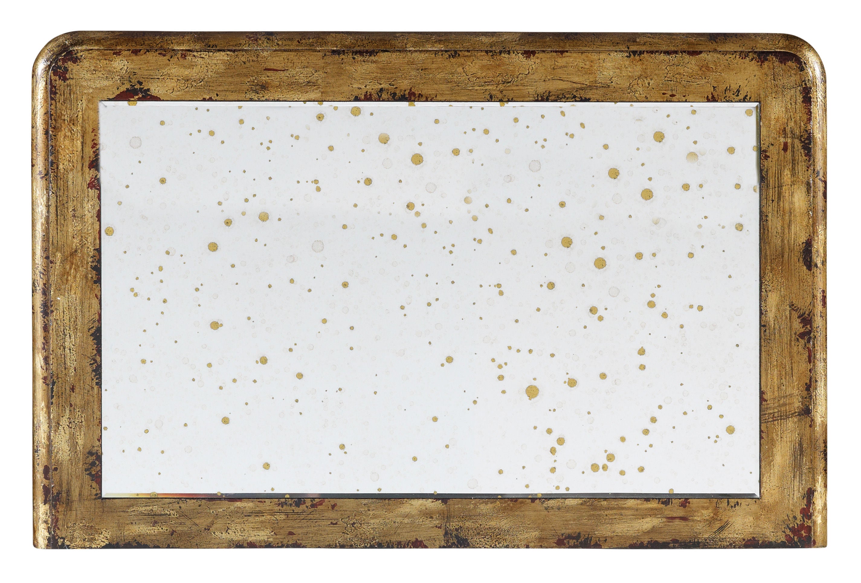 One shelf Finish: Bling - a deep, rich gold accented by gold leafing. Distressing includes chopping. Hooker Furniture utilizes a multiple-step finish process of up to 16 finish steps. This results in an unsurpassed clarity, depth and color richness and durability to our finishes. Through hand-craftsmanship such as rubbing and padding, our finishes feel as good as they look, with a smoothness that is delightful to the touch. Hooker Furniture uses carefully chosen solid wood and select wood veneers over durable wood products in our furniture construction. Use of veneers enables more decorative looks unattainable with solid wood. Veneers are used over durable wood products such as medium density fiberboard (MDF) and particle board, made of renewable resources. MDF and particle board are used in quality furniture for areas that need to be stable, such as large surfaces. These durable wood products do not expand and contract with heat and cold and do not absorb moisture as much as solid wood, which results in stronger and longer-lasting furniture. Birch Veneers with Antique Mirror and Metal We recommend dusting frequently with a clean, soft, dry, lint-free cloth. Clean the surface by rubbing in the direction of the grain. We recommend polishing your furniture approximately every six months using a clean, soft, lint-free cloth and rubbing the polish in the direction of the grain. Guardsman furniture polish or any furniture polish that doesn't contain silicone is recommended. Hooker Furniture offers full height, full depth and full width drawers for maximum storage capacity. All drawers have strong, time-tested English or French dovetail construction, for years of problem-free use. Plywood drawer bottoms are attached to plywood drawer sides for strength and durability. Metal side guides or wood on wood guide systems operate smoothly. Dimension (LxWxH):18.50 x 28.75 x 32.00