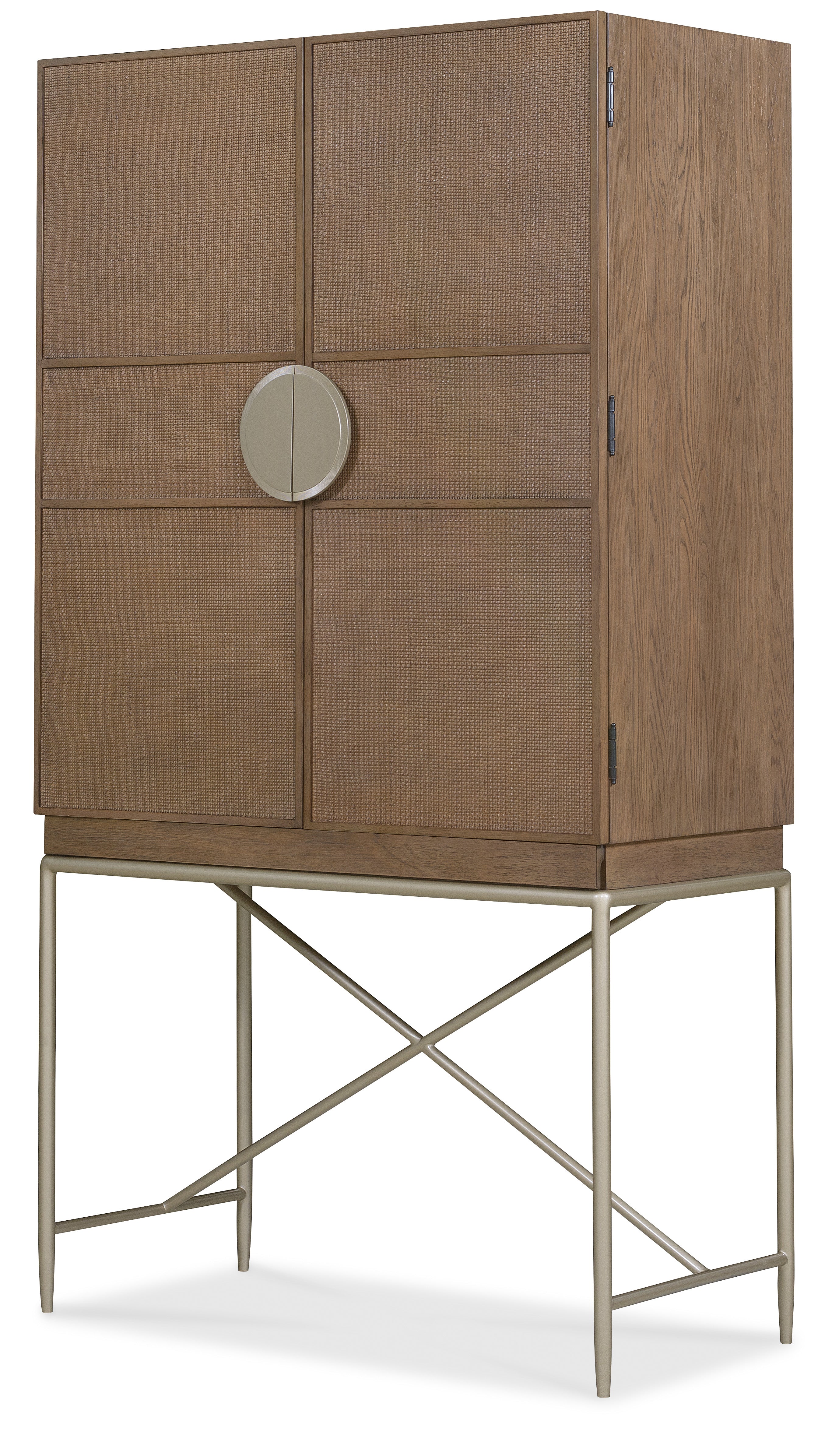 Cane front doors Finish: Wren: quartered and cathedral-cut white oak veneers in a light earthen-toned finish. Matching woven split cane door fronts. Satin-finished large semi-circle pulls and round knobs on the inside. Hooker Furniture utilizes a multiple-step finish process of up to 16 finish steps. This results in an unsurpassed clarity, depth and color richness and durability to our finishes. Through hand-craftsmanship such as rubbing and padding, our finishes feel as good as they look, with a smoothness that is delightful to the touch. Hooker Furniture uses carefully chosen solid wood and select wood veneers over durable wood products in our furniture construction. Use of veneers enables more decorative looks unattainable with solid wood. Veneers are used over durable wood products such as medium density fiberboard (MDF) and particle board, made of renewable resources. MDF and particle board are used in quality furniture for areas that need to be stable, such as large surfaces. These durable wood products do not expand and contract with heat and cold and do not absorb moisture as much as solid wood, which results in stronger and longer-lasting furniture. White Oak Veneers, Cane and Metal We recommend dusting frequently with a clean, soft, dry, lint-free cloth. Clean the surface by rubbing in the direction of the grain. We recommend polishing your furniture approximately every six months using a clean, soft, lint-free cloth and rubbing the polish in the direction of the grain. Guardsman furniture polish or any furniture polish that doesn't contain silicone is recommended. Hooker Furniture offers full height, full depth and full width drawers for maximum storage capacity. All drawers have strong, time-tested English or French dovetail construction, for years of problem-free use. Plywood drawer bottoms are attached to plywood drawer sides for strength and durability. Metal side guides or wood on wood guide systems operate smoothly. Dimension (LxWxH):21.00 x 40.00 x 76.25