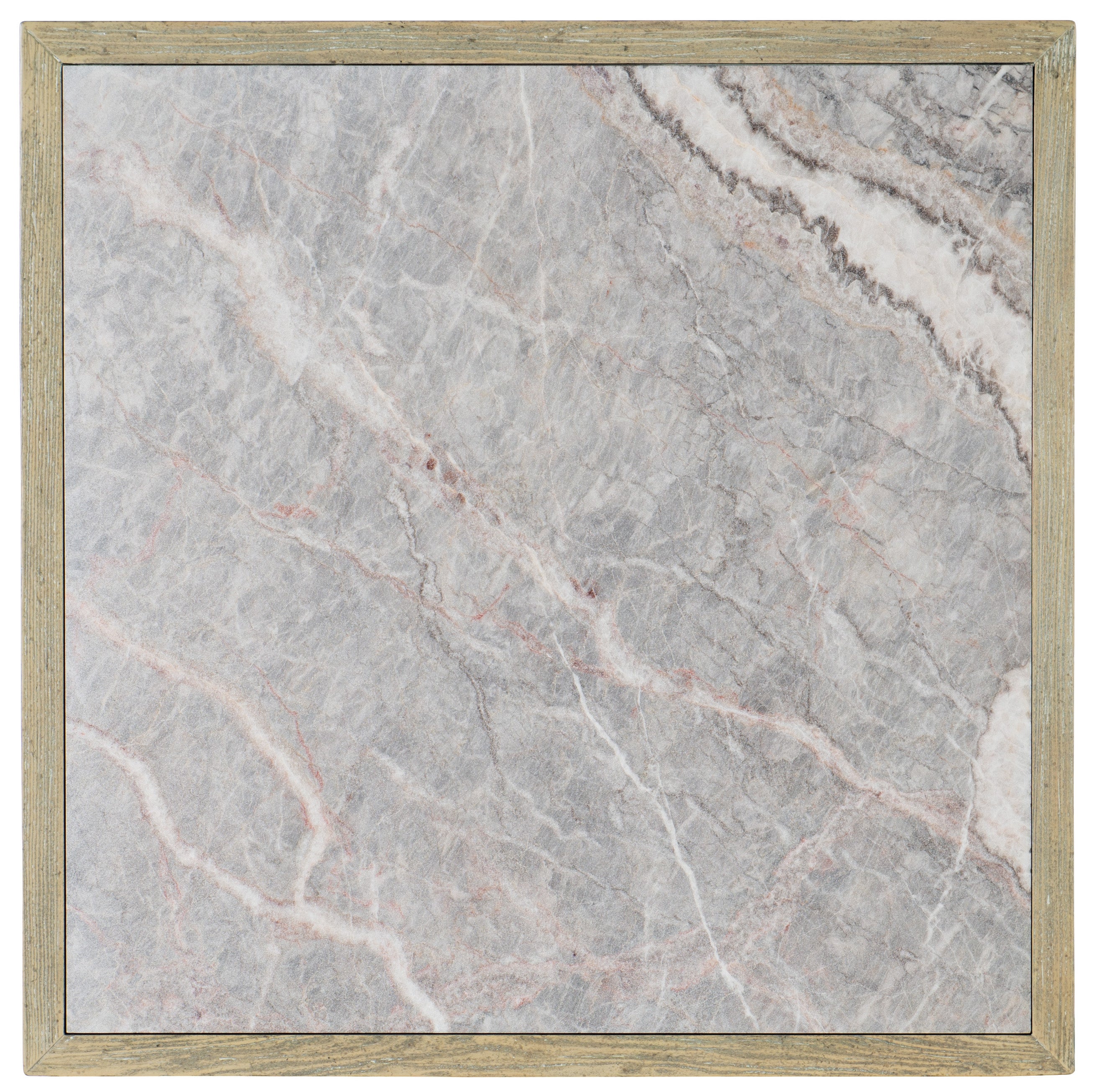 Inspired by the rugged and picturesque Malibu landscape, the Surfrider Cocktail Table combines hardwoods and stone veneers with a modified X-motif fretwork on the sides for a sophisticated casual appeal. The stylish square-shaped table contrasts a honed stone veneer top with the light natural Driftwood distressed finish.