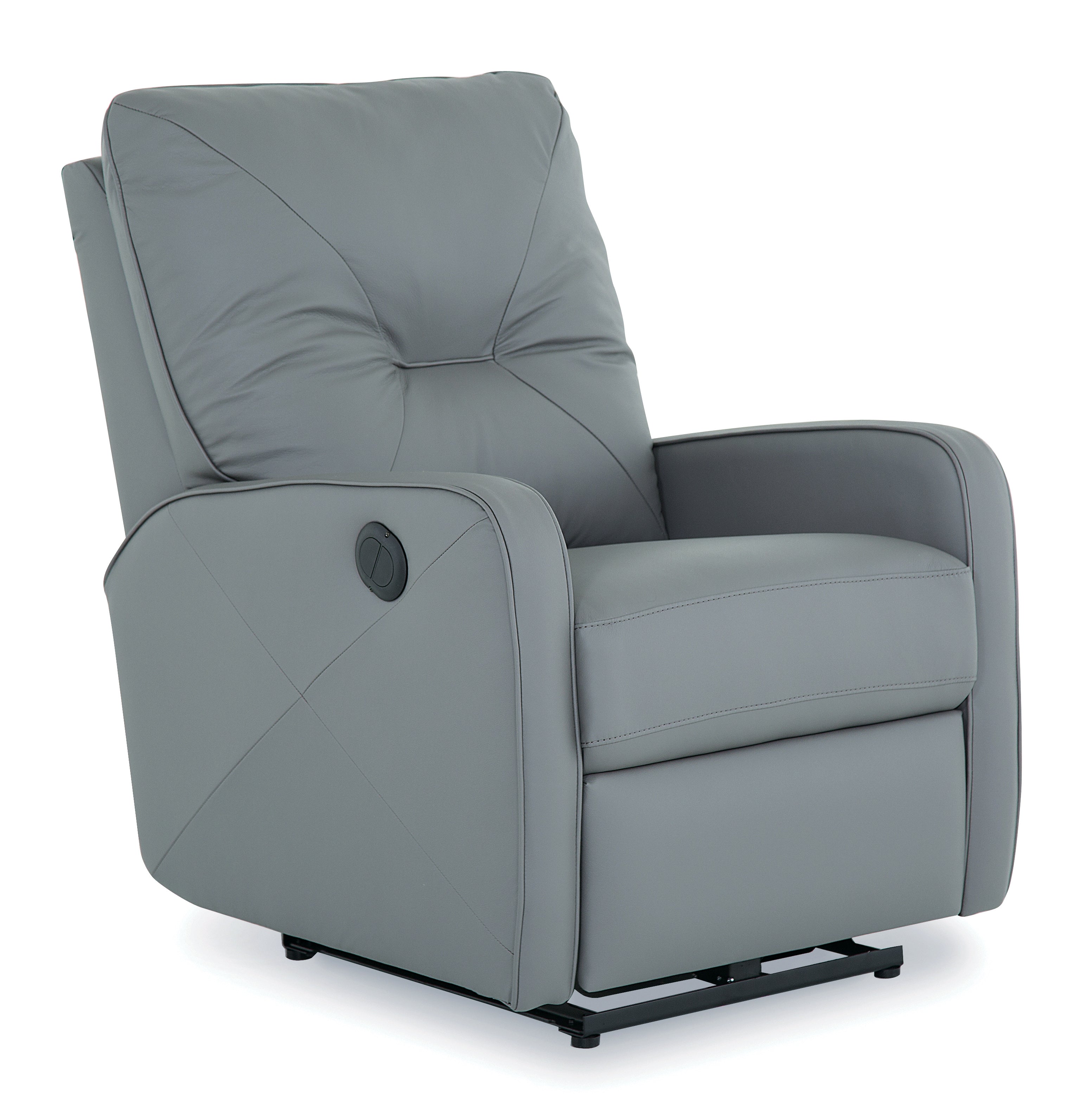 The Theo recliner is all about a smaller scale without sacrificing comfort. The sleek narrow arms add a modern touch, accentuated with a piping trim. The unique back treatment is inspired by a toss pillow and the diagonal stitching and piped back details create a singular design statement.