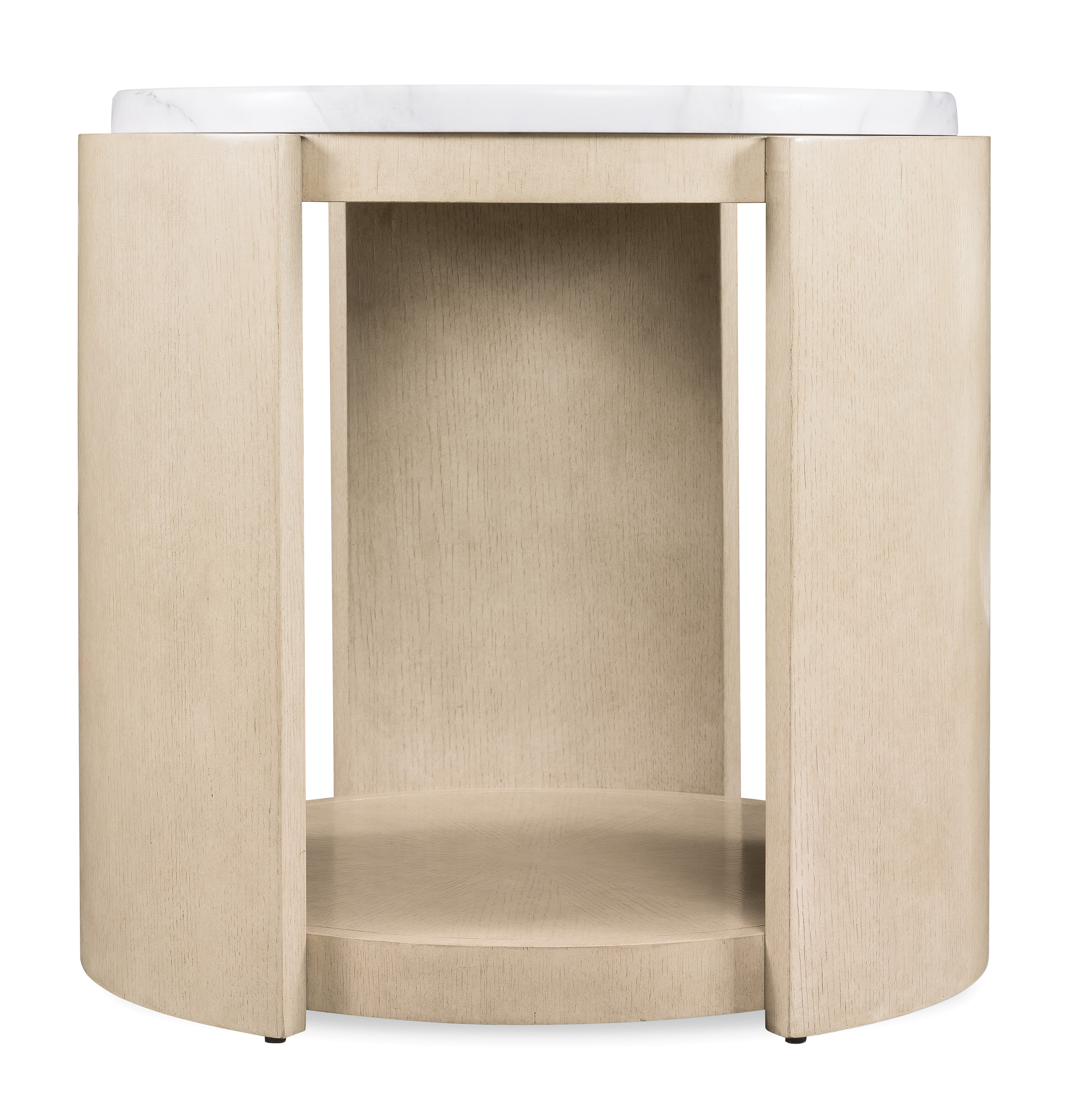 The Westwood Round Side Table adds quiet elegance beside a sofa or lounge chair. A sculpted oak veneer base supports a creamy Volakas stone top, offering subtle contrast and timeless appeal in modern interiors.