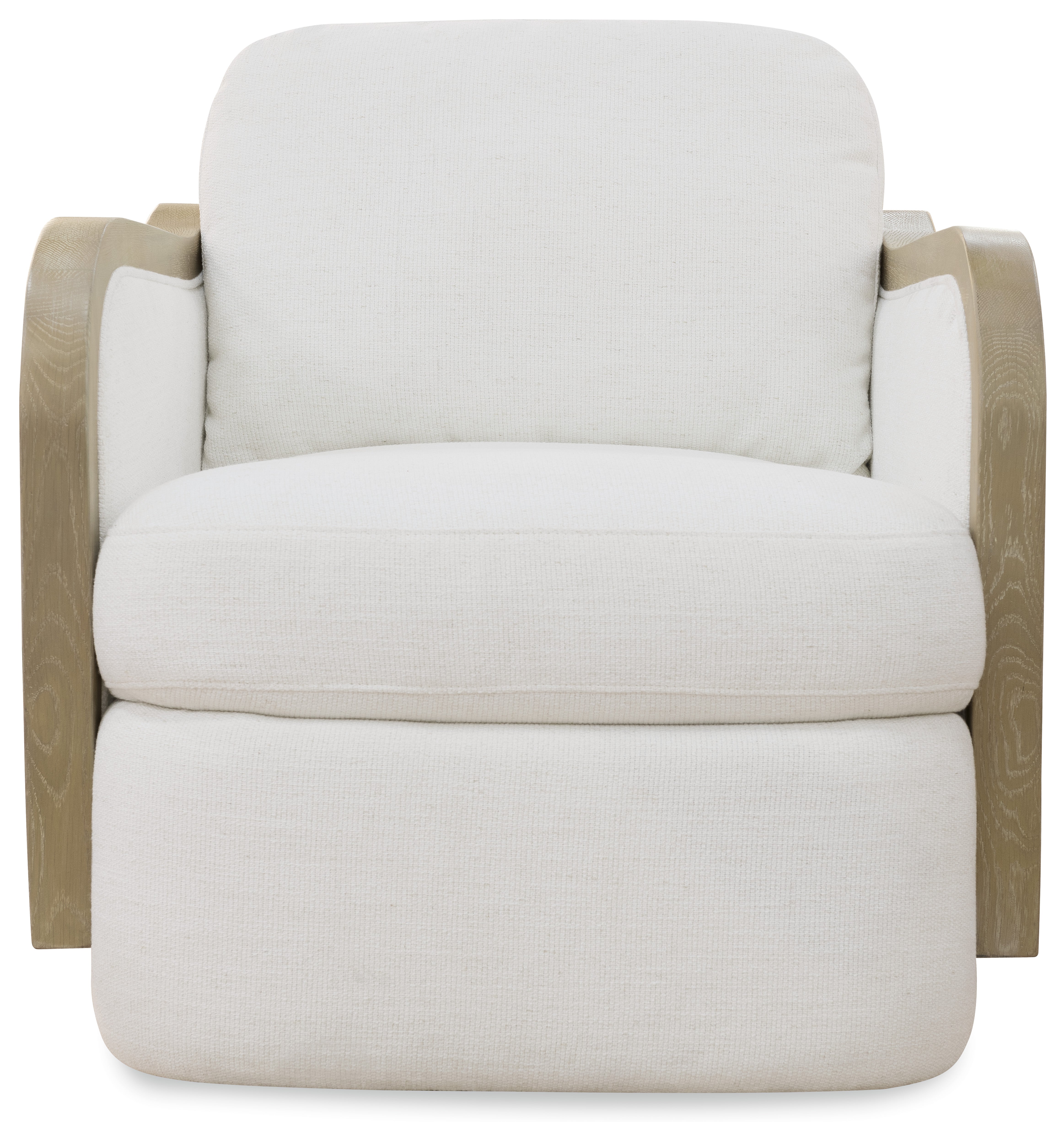 The Wilma Swivel Chair brings breezy sophistication to any relaxed setting. Framed in light wood with a woven rattan exterior, this chair features a smooth swivel base and is upholstered in soft, durable Halston White performance fabric. Its sculpted profile and natural textures make it a perfect fit for coastal, casual, or transitional spaces.